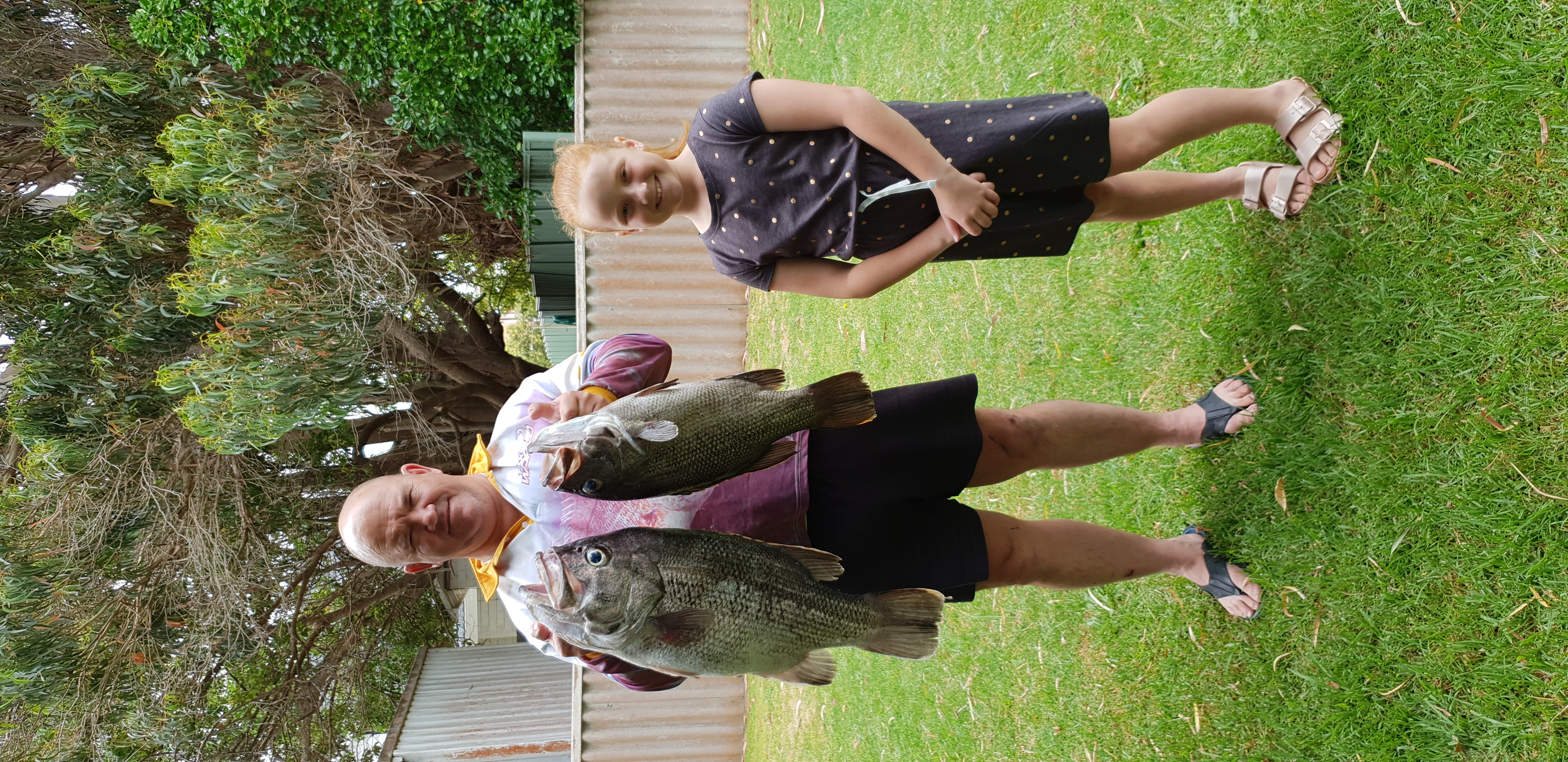 We got to the spot 15 mins later and started drifting, 2 drifts in and Miss 9 comes up solid on a 56cm shy, her first. She handled it well with just a little help from dad. An hour later on our last drift I had a nice hit on the 5 inch abrohlos tackle paddle tail and landed a 65 ish dhuie too.