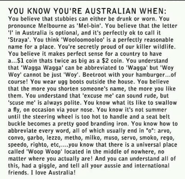 Well done. Now just chill out around the barbie sinking a few bush chooks out beyond the black stump . just don't get too shit faced ending up in shit creek blowing a plugger in your thongs