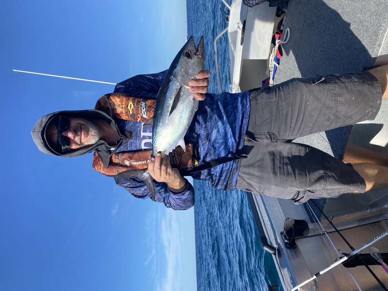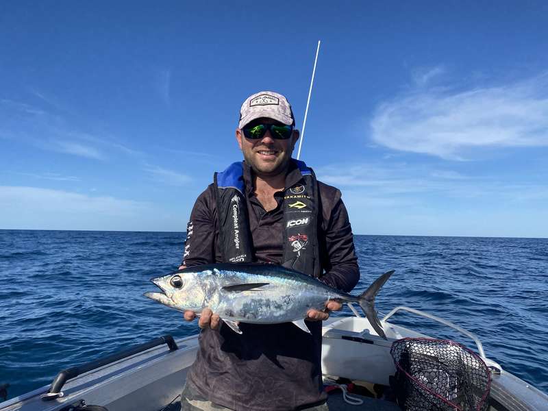 Went for a bit of a Macky troll out of Hillarys on Sunday, no luck with them but headed out a bit further and found some tuna instead, awesome fun seeing them smash the plastics on the surface, kept one each then decided to slowly head back in dropping plastics on the way on good looking ground, picked up a nice size cuttlefish moved spots and hooked my first Dhu on a 4" gulp. Pretty much all the tuna schools we saw were in 15-20 meters and the dhu was in around 10