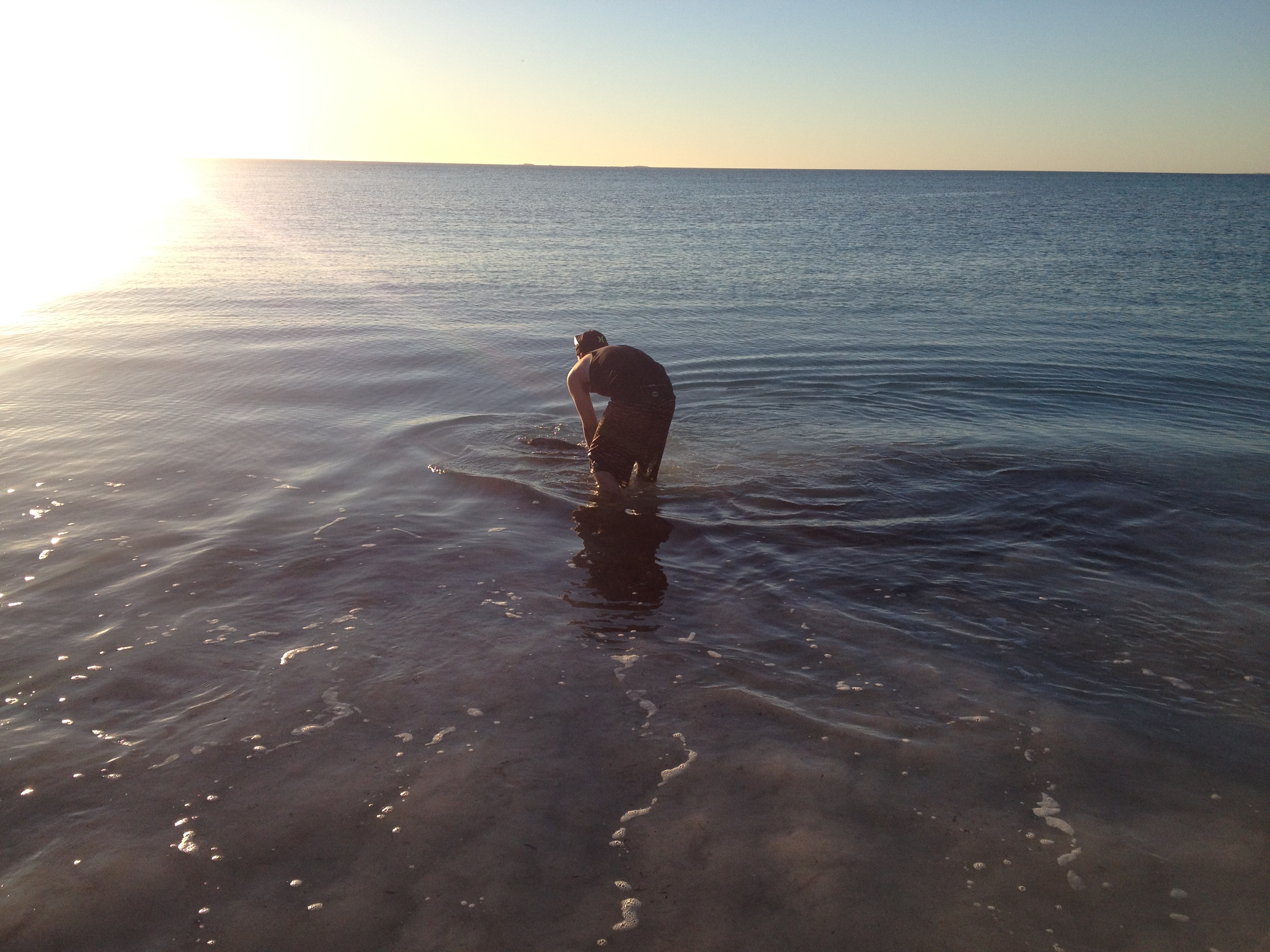 The next day we were all up for 5:30 and we had the lines in the water by about 6:15, only to find out that a ton of weed had been blown in over night. We kept fishing for and hour or so before we packed it in and decided to head back over the point and fish the beach next to camp and try for a few sharks.