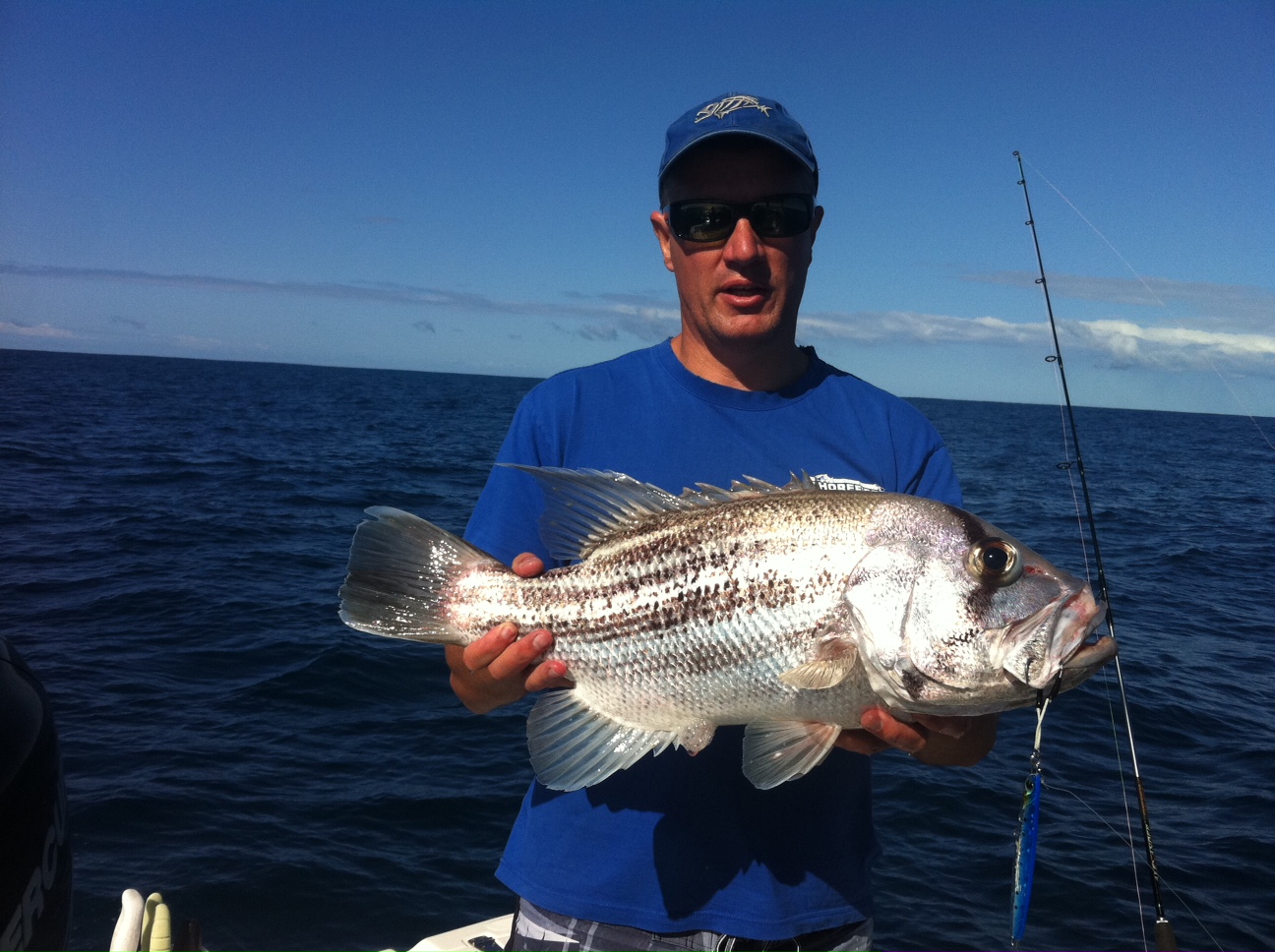 Magnificent day on the water, but it proved hard to find sambos early, but the dhuies were loving the jigs and we had to content ourselves with 2 dhuies over 600 and a nice black arse by 8.15 am.