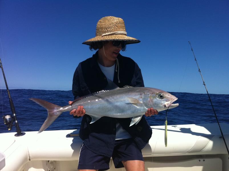 A few fish on the sounder and all 4 of us hooked up, but my young blokes got comprehensively bricked on his light jig gear.....his mates really struggled with the power of these fish but on heavier gear landed a couple of nice ambers, as did I.