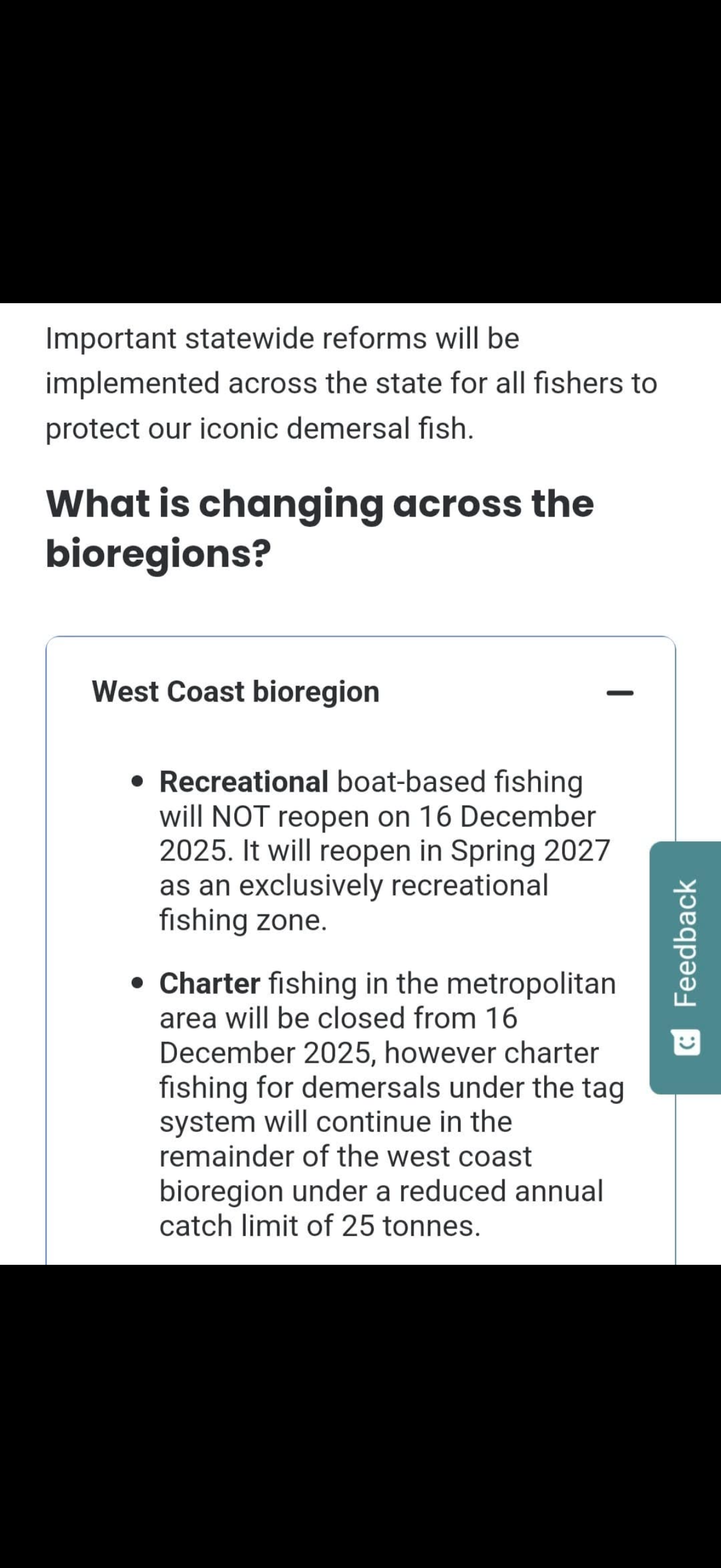its going to take more than 2 years to repair mismanagement that has occurred , polititions want to be re elected , crab closure lasted for more than 2 years in cockburn sound .... shark bay near on closure / restrictions same ....not sure how long it takes for demersals to grow to legal size but pretty sure itl take more than 2 years JMO thats all