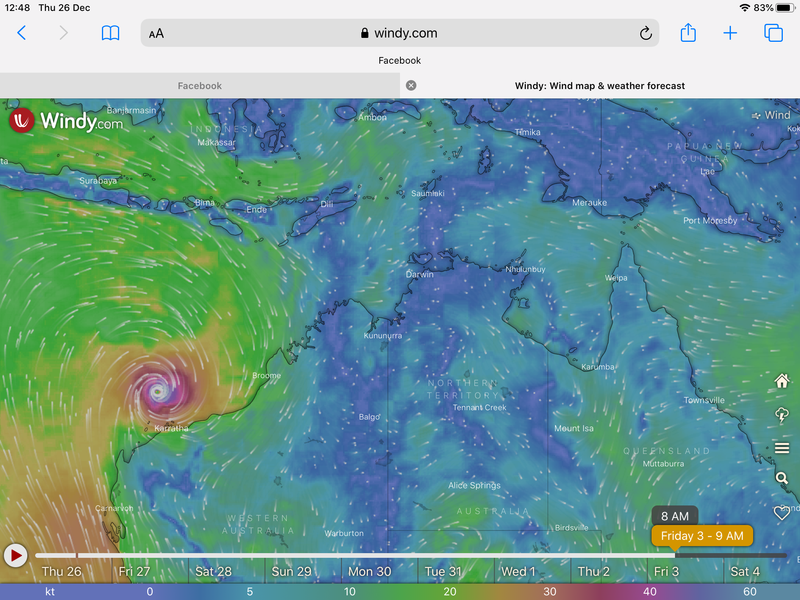 We went ahead and booked for 9 days, I'll take the punt. Windy now has it not actually forming a low until morning of the 5th. Crossing the coast between Karratha and Hedland around midday of the 8th. So anything, or nothing, could happen.