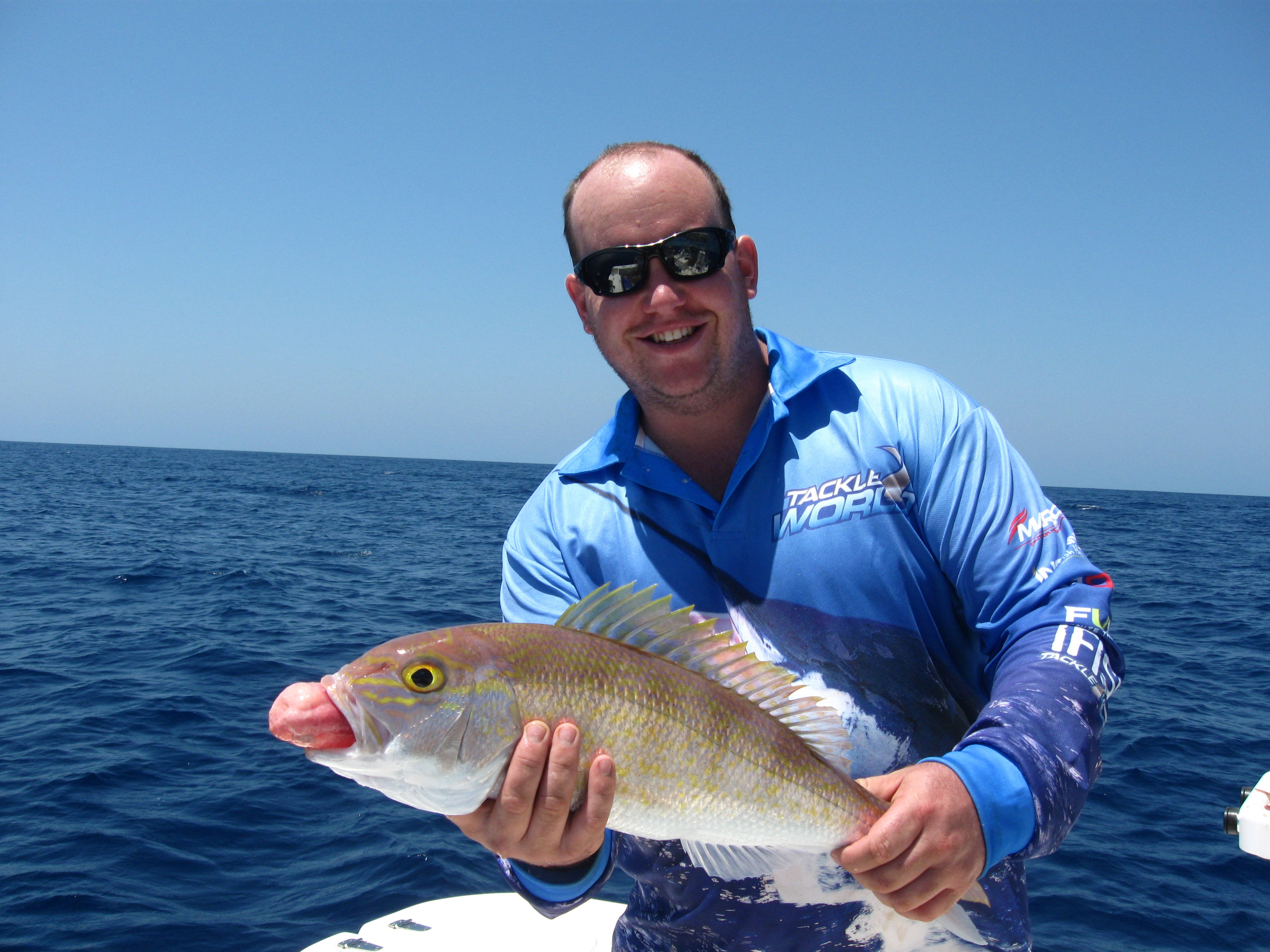 Went out fishing today on a mates boat, left the marina just after 6am for the run up to the tip of the cape. Got to the cape and put out a spread of 3 lures to try for some mackies while on the way to the fishing grounds. Had one run, but the lure was dropped, so we kept going and found some gound in around 50m of water. Sent my a halco gold twisty jig down and on the 3rd drop got a nice golden trev around 60cm. sent him back down. My fishing buddy got a hookup and pulled up his first red. He was pretty happy !