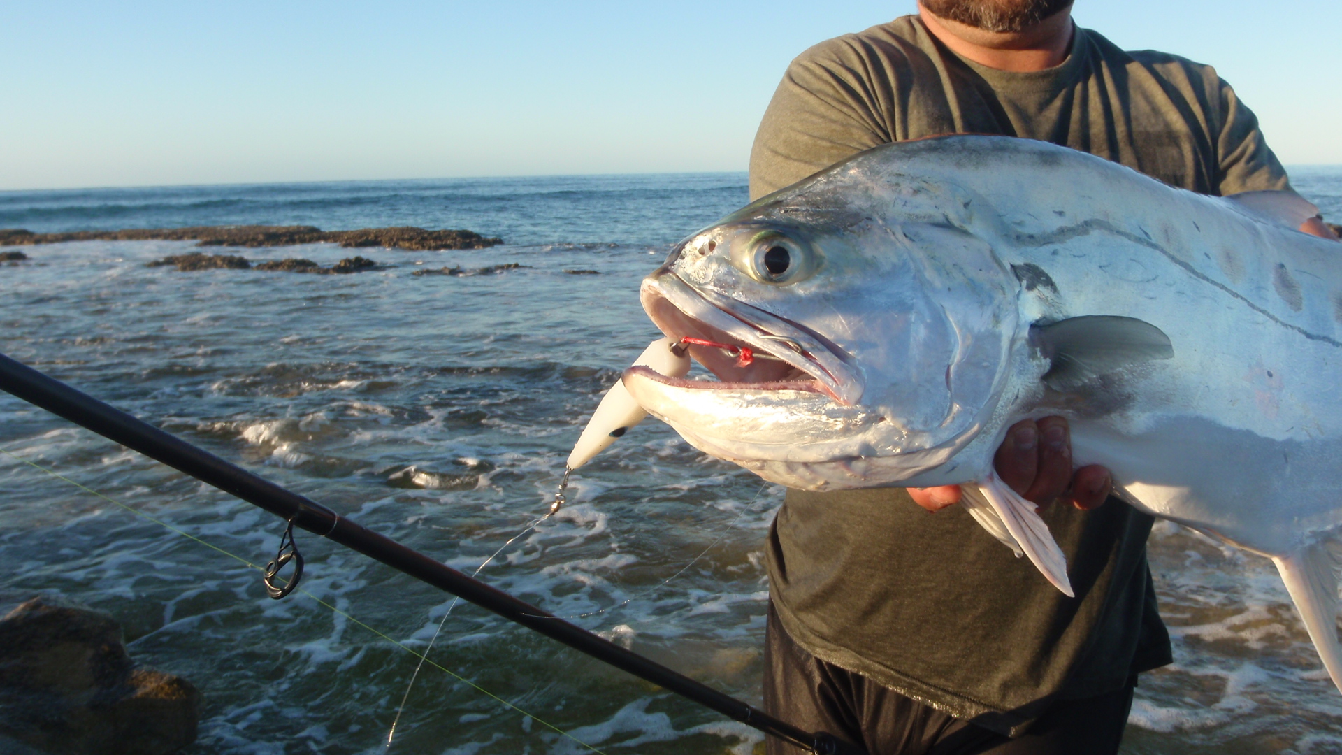I used a Assassin Amia rod , Stella 5000 with 30lb Saltiga braid . The lure in the first pic is a Gt ice-cream and the second is a Iron Candy , South African lures and rod