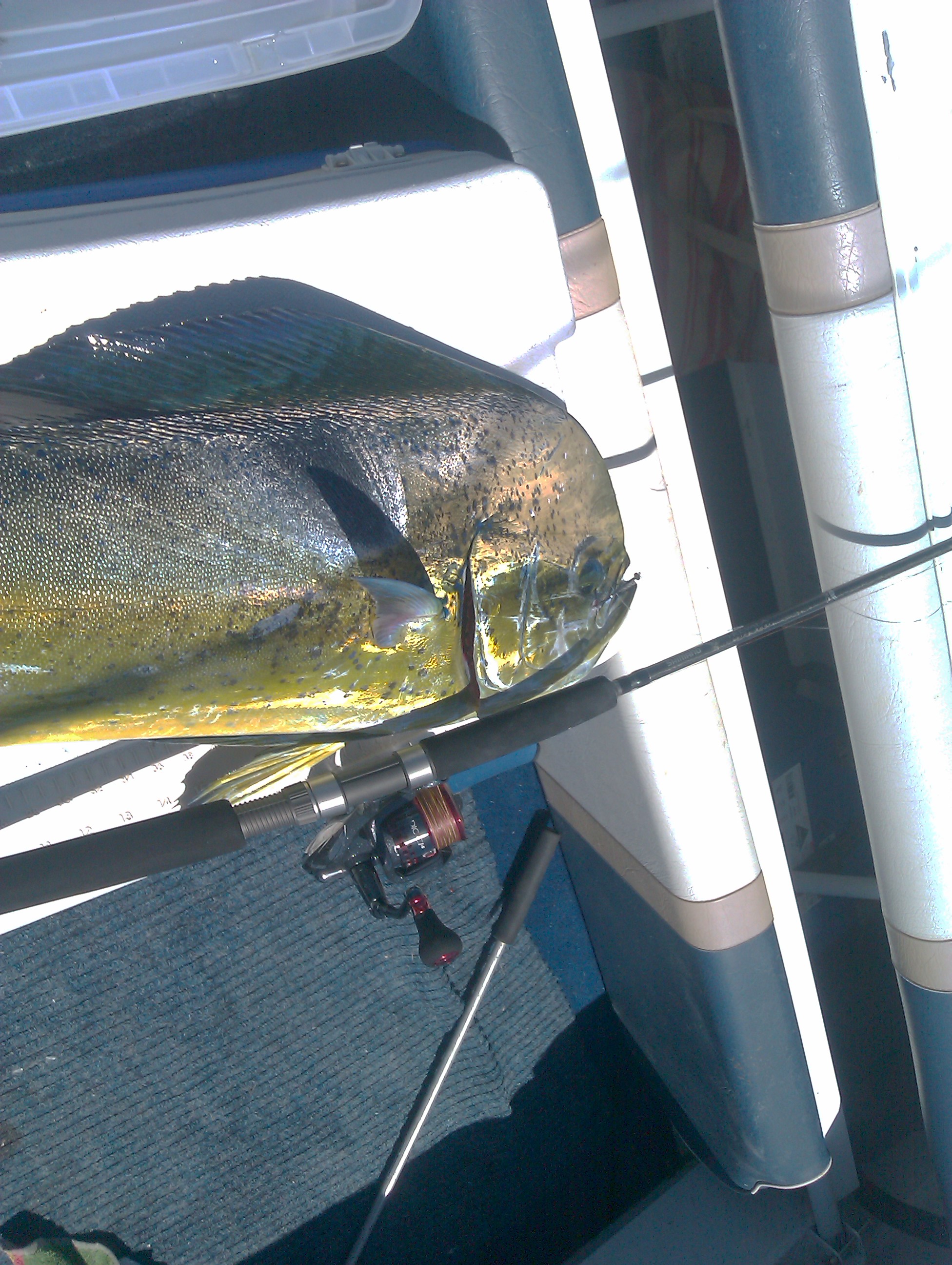 was going to try west end for some mackies today (still a virgin), ended up catching dollys on bream gear instead at the fads. thought we'd troll into the barges and on the way managed a nice litle yft another first, 3 metro tuna this week as well as a pb metro dolly at 1130 and a touch over 8kg!!