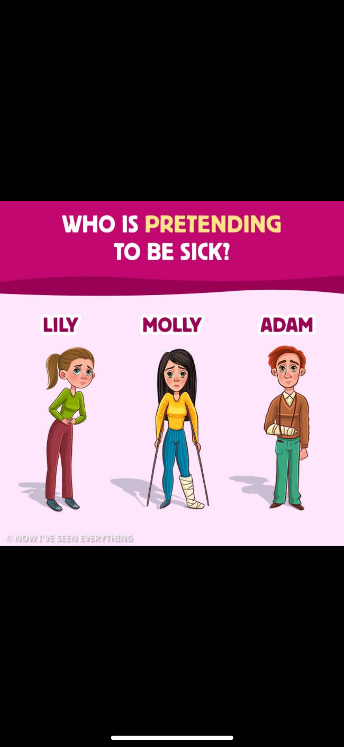 Got the first one easily. Can't figure out who is pretending to be sick.