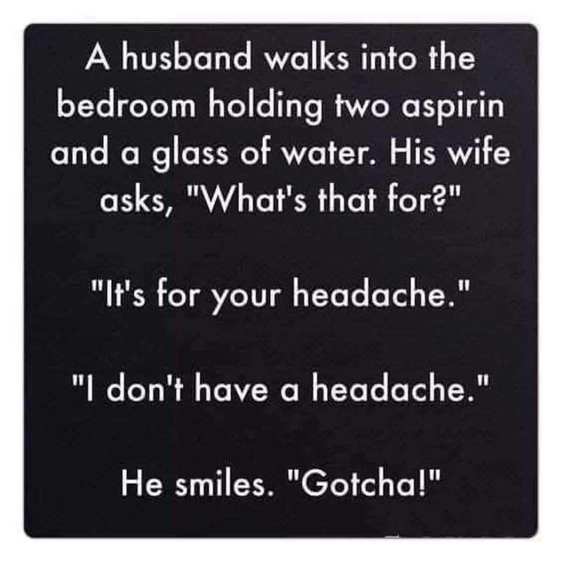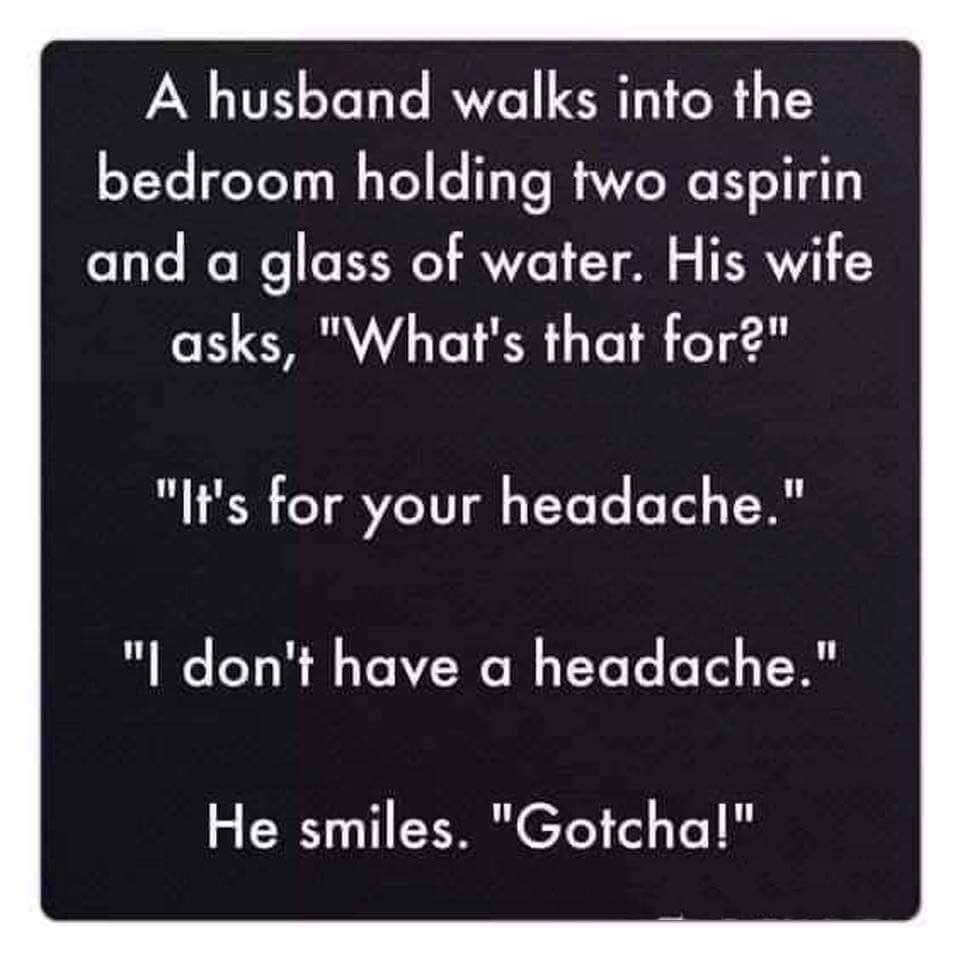 IM MORE KEEN TO TRY THE ASPRIN AND WATER FIRST AND WHEELBARROW SECOND