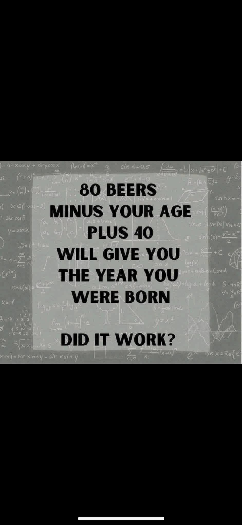 as for calculating my age... 5 years out... needs to be 85 beers....