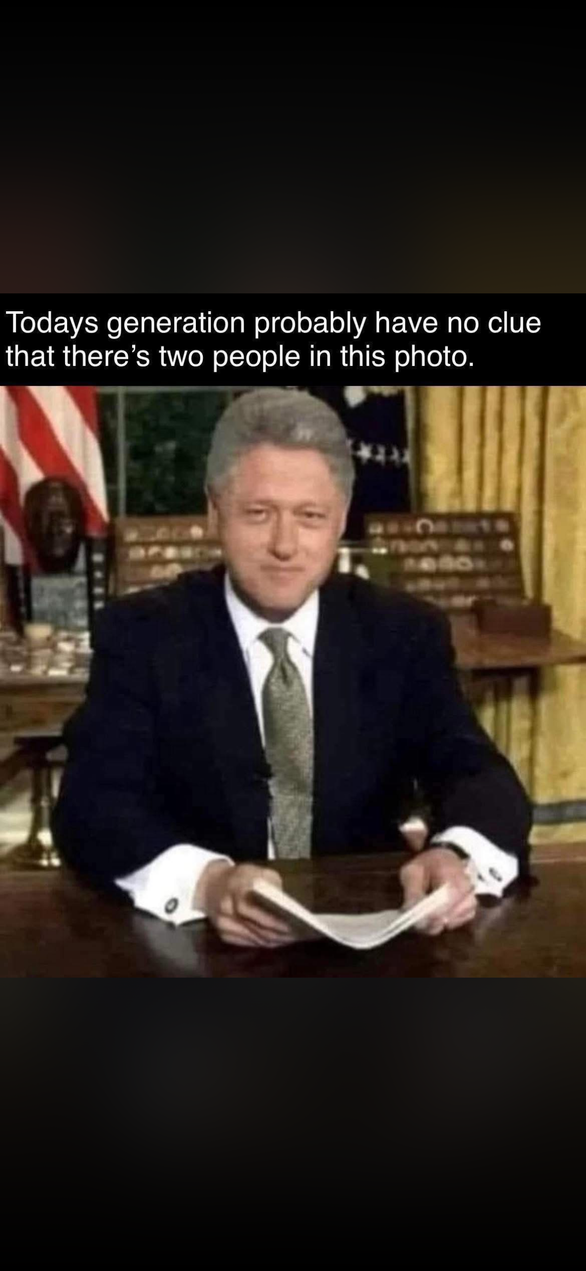 There is a bust of JFK in the back ground. Trump threw it out when he came into his second term.