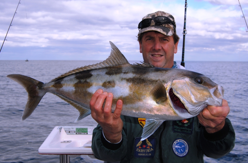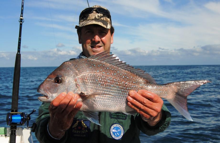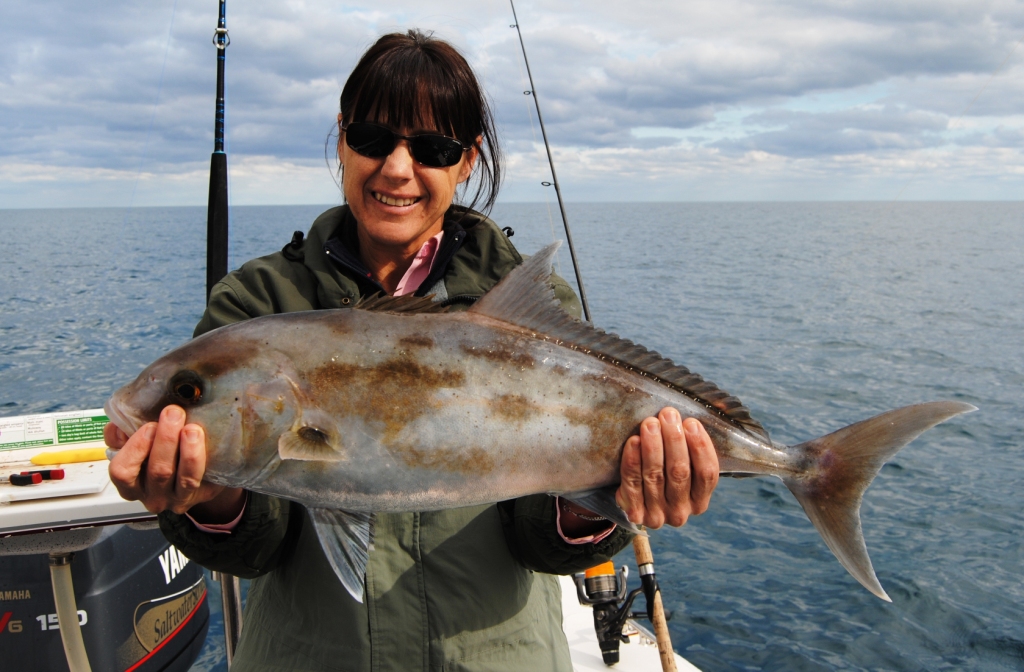 I had two early runs but missed both strikes. The next run resulted in a Pinkie of 32cm followed by a decent sized Wrasse and then a Port Jackson Shark. My next fish was a 53cm Pinkie – my largest from the boat to date. Gail managed a further two smallish Pinkies before setting the hook into something substantial. The Shimano Nexave 15-30lb rod with the Ambassadeur 6000C4 reel loaded with 20lb braid is an ideal combination for targeting fish in the light to medium class. After a fight which lasted about 15 minutes Gail landed a Sambo of about 4kg - her first from the boat. During her tussle with the Sambo my other reel took off but I managed to drop this fish as well.