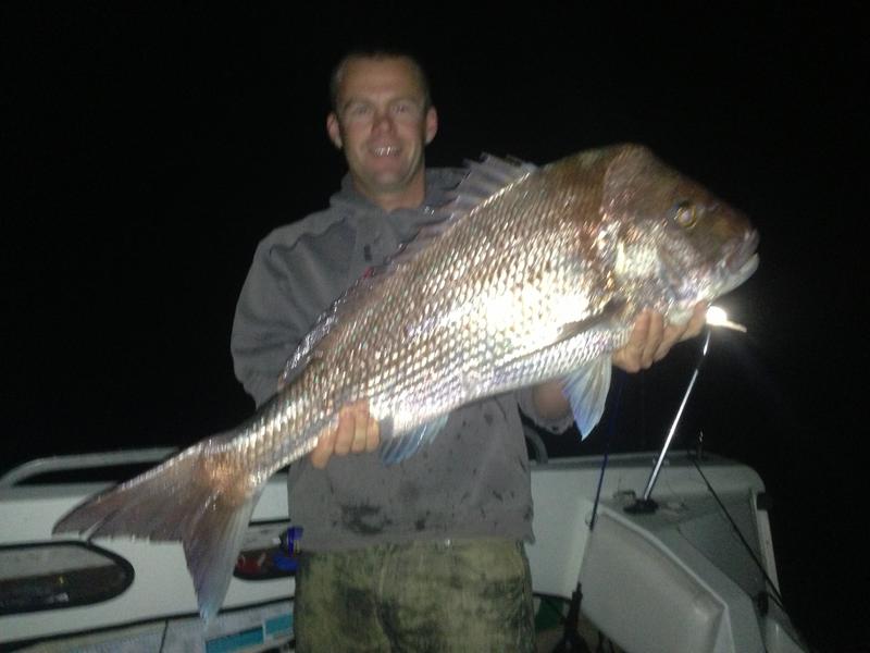 Didnt take too long before f@$^#kn NW blowies turned up, but only seemed to trouble my mate Glen onboard. He lost I think 3 rigs in about 5 mins. While he was mucking about with that, I landed my 1st pinkie on a glow soft placcie. Got pretty crazy after that at one time Glen was dealing with a large port jackson while his other rod went off with a brozie on the end (he lost) while I got a pike tangled in the burley bucket all at once!