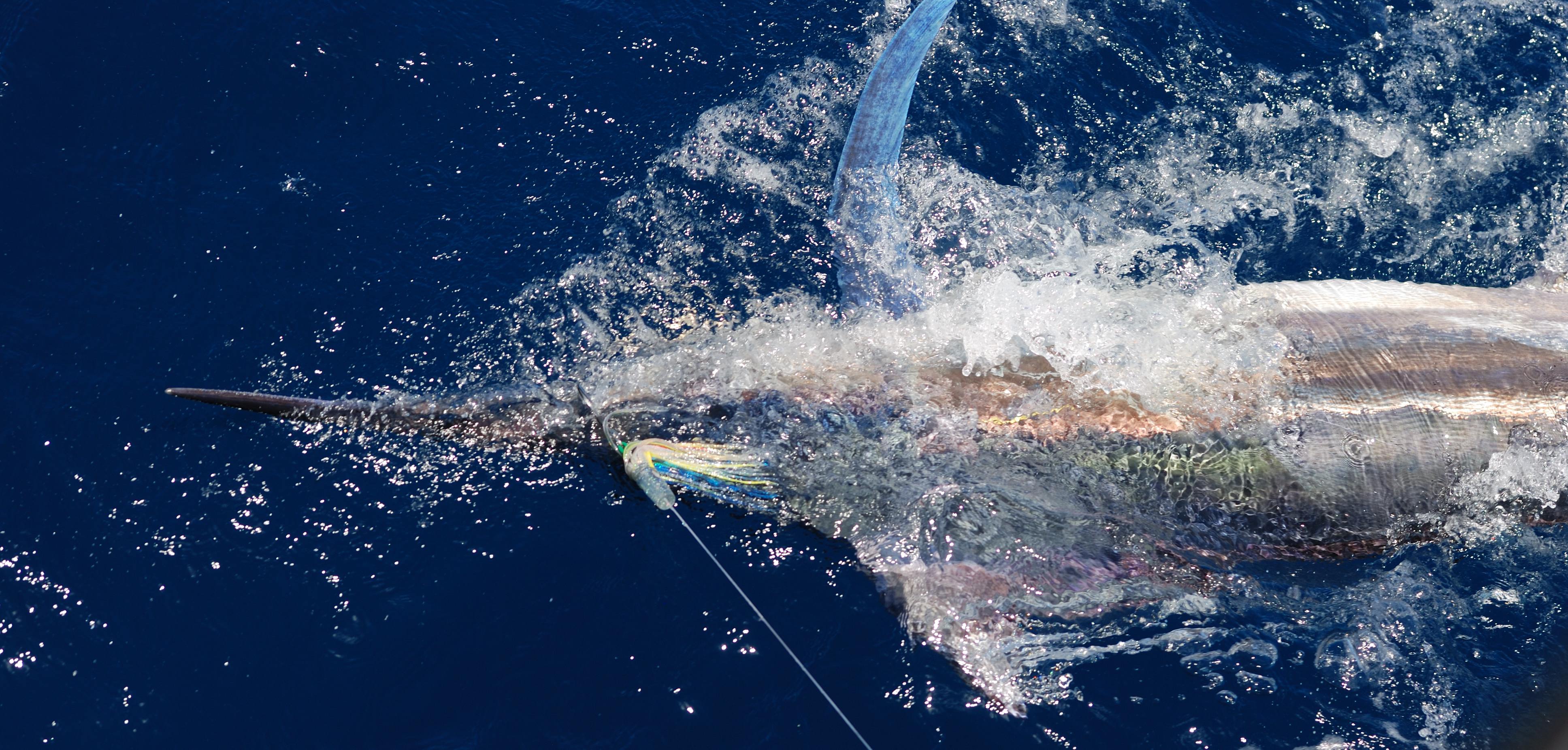 A live yakka , we switch baited , he came in on the teasers , got a couple that way , all small sails 10-15 kgs , great fun on light line .