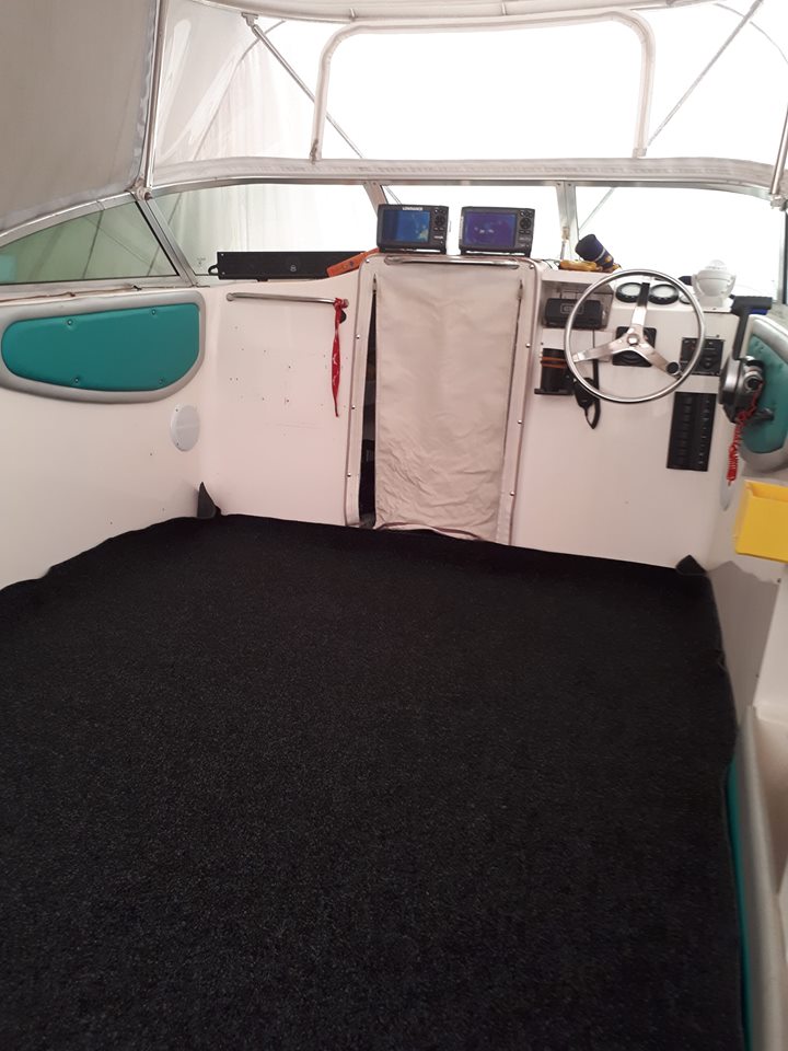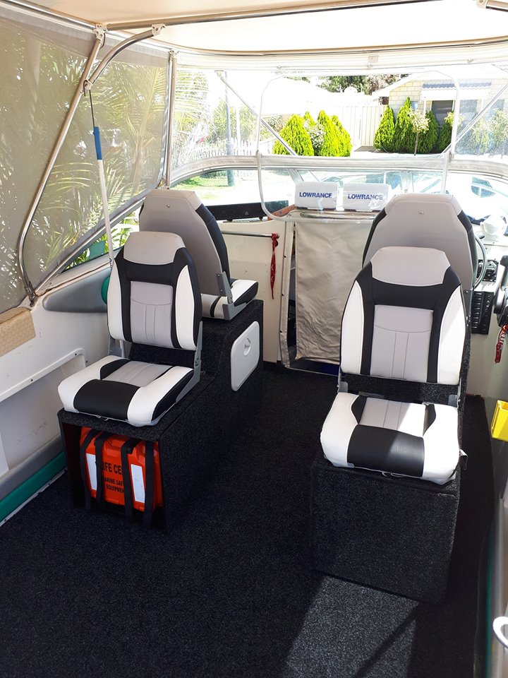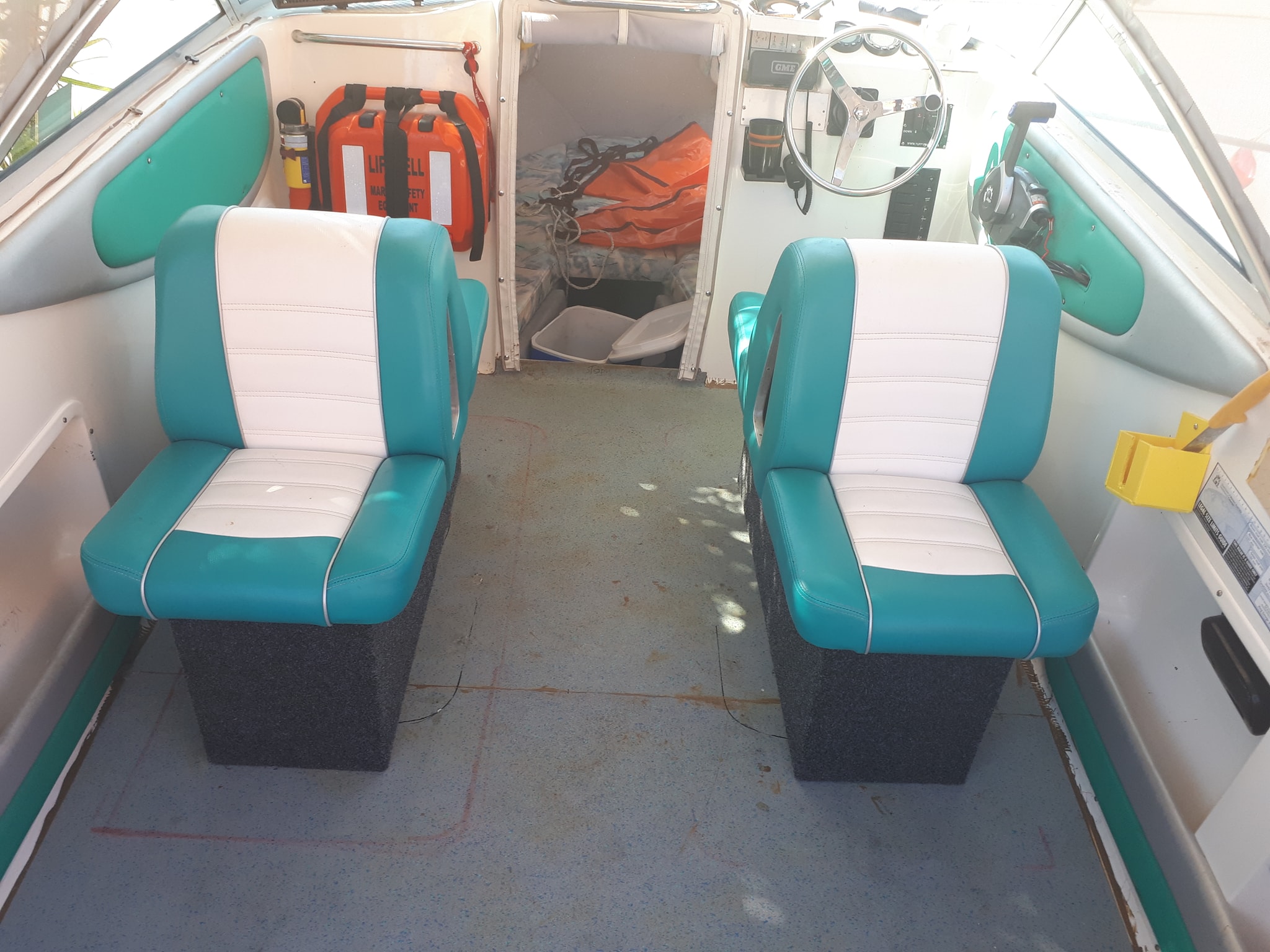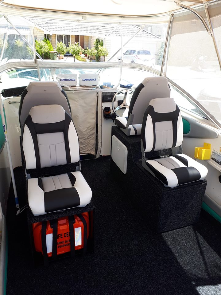 After trying to find seat boxes on the net that were very bloody expensive & small-ish for what i wanted, i decided to make my own from marine ply. Inside & base of seat boxes has been sealed with a water proof membrane. Built in the 2 x compartments, 1 holds 4 x table trays & the smaller on is for keys, phone, camera's ect. Made a more " safety friendly " location in the passenger seat for my "Life Bouy" which will now just float out in case of an emergency