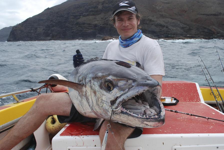 We were living on a large sailing vessel which we used as a mother ship, making day trips out on the two tenders to fish Eiao and the surrounding islands. It was a jigging/popping trip, with my personal target being a large (30kg+) dogtooth tuna.