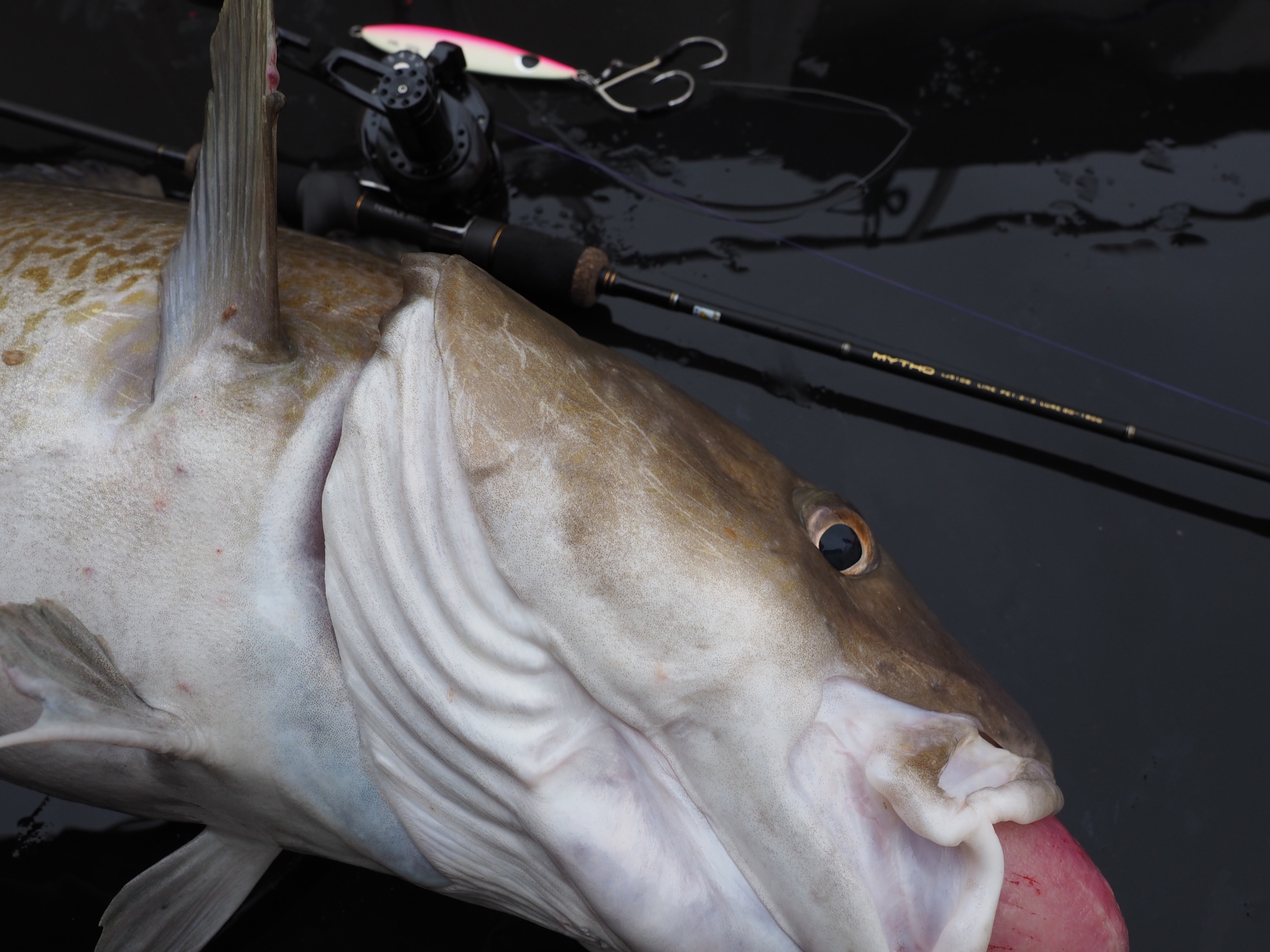 After the second fish I decided to downsize the gear to the Mytho combo and 150gr jigs, and this is the combo I used for the majority of the trip. I was incredibly happy with the gear. The rod was comfortable up to 200gr jigs with the relatively slow jigging style that seemed to work best for the cod, and was light enough to make the fights really good fun. The reel too performed faultlessly. Plenty of super smooth and progressive drag to stop all the fish I encountered on the trip with a really smooth retrieve. Plus the whole setup is feather light, weighing in at only 470gr for the combo, which made it a pleasure to jig with all day. This is to my mind really a perfect combo for the UK, particularly if you don’t want to go all out with a more expensive reel, and it is the combo I’ll be reaching for first on my upcoming Norway trip.