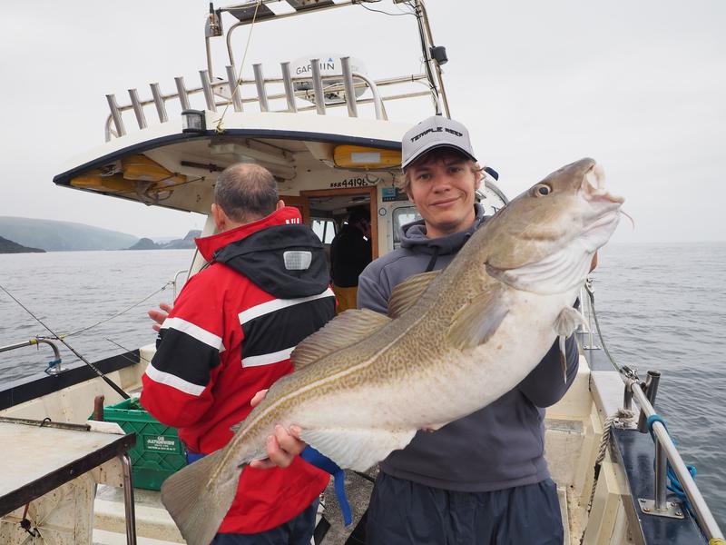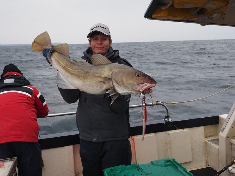The first day we boated around 750lb of fish, with the vast majority being cod to around the 30lb mark. The second day the weather took a turn for the worse, but we still stuck with our initial plan to head out to a wreck which was in 120m of water in the hope of getting a ling. It was a long steam out in trying conditions, but the chance of a trophy sized ling made the pain worthwhile. We did a number of drifts over the wreck and could see plenty of fish on the sounder, but I was struggling to get much interest from them. The water was deeper and the drift much faster than the day before, which gave you very little time in the strike zone with the jigs. Sadly I didn’t manage a ling on jig, but Kenny did get a nice one on bait. I did jig up nice coalfish though, which really fight well, particularly as compared with the cod. Actually throughout the trip it seemed that every species in the area was very happy to hit the jigs (with jigs proving the most effective catch method) other than the ling, with all ling for the trip being caught by the other guys on baits.
