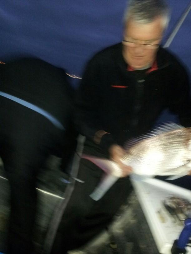So, after messing with my old man as to where our secret spot was we headed out to some new ground pretty close to where we wanted to be at sun down. We tried for a while for nothing despite fish on the sounder. We told him it was the spot, then that it wasn't the spot, then we told him to get his rain coat on as he was going to get wet getting to the spot, then to drop his line because we were on the spot etc etc, was good fun actually.