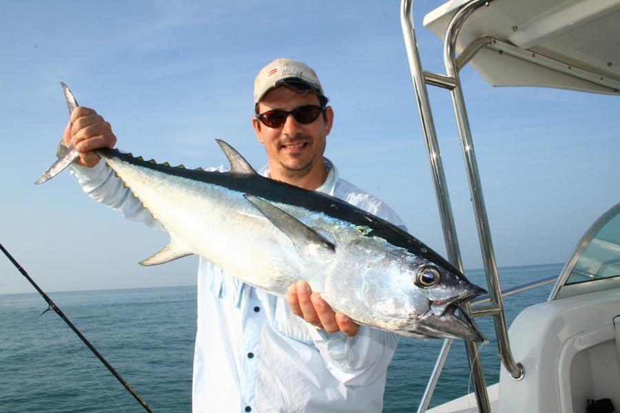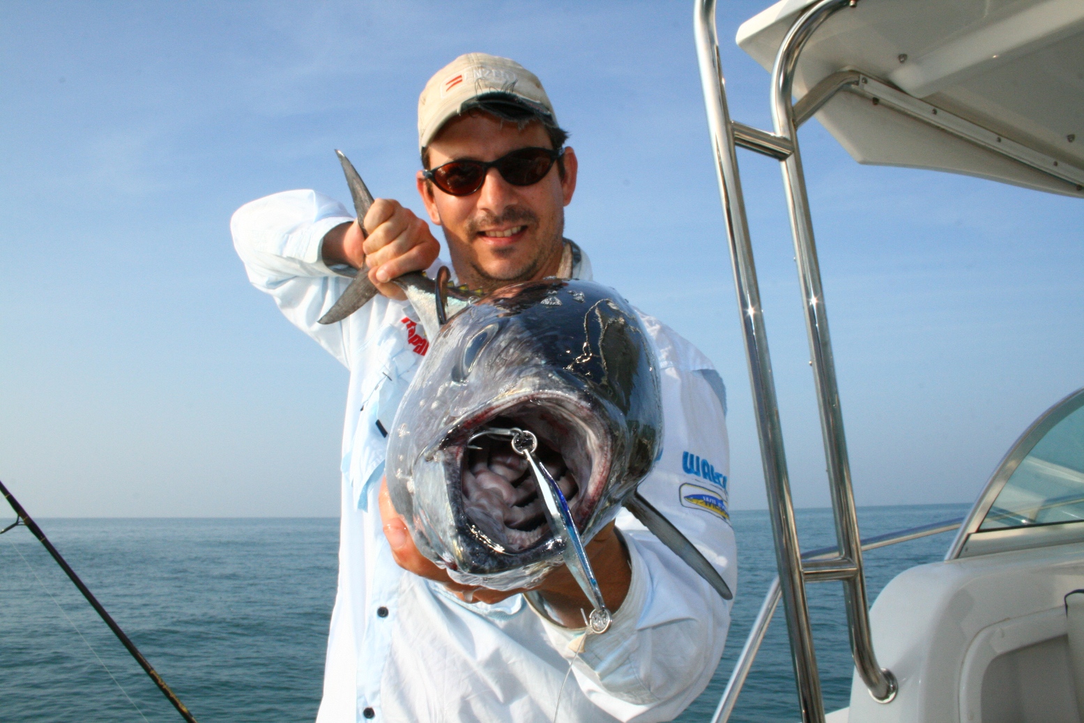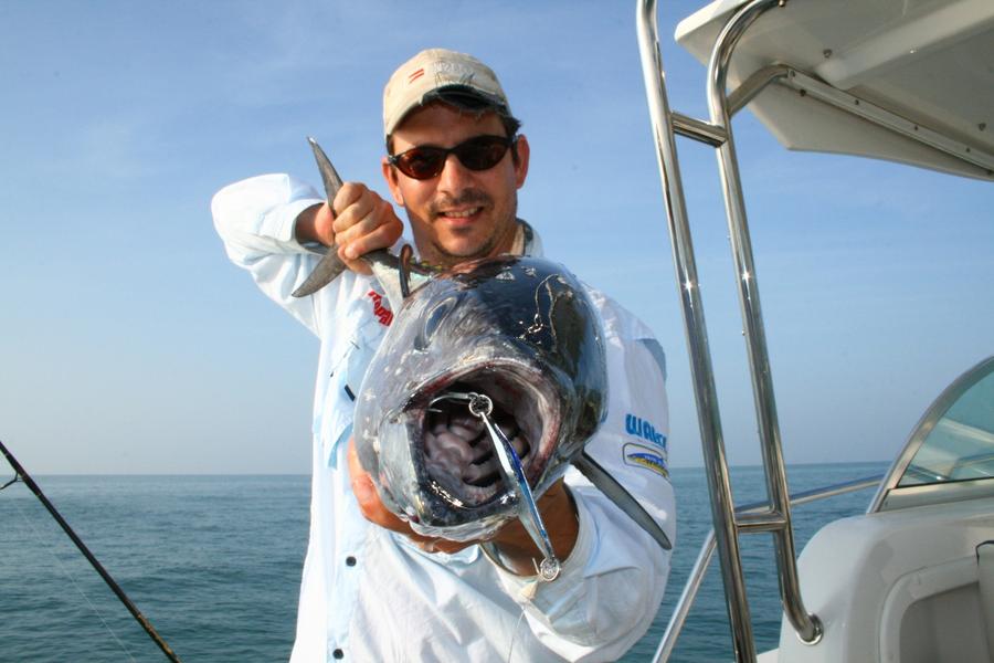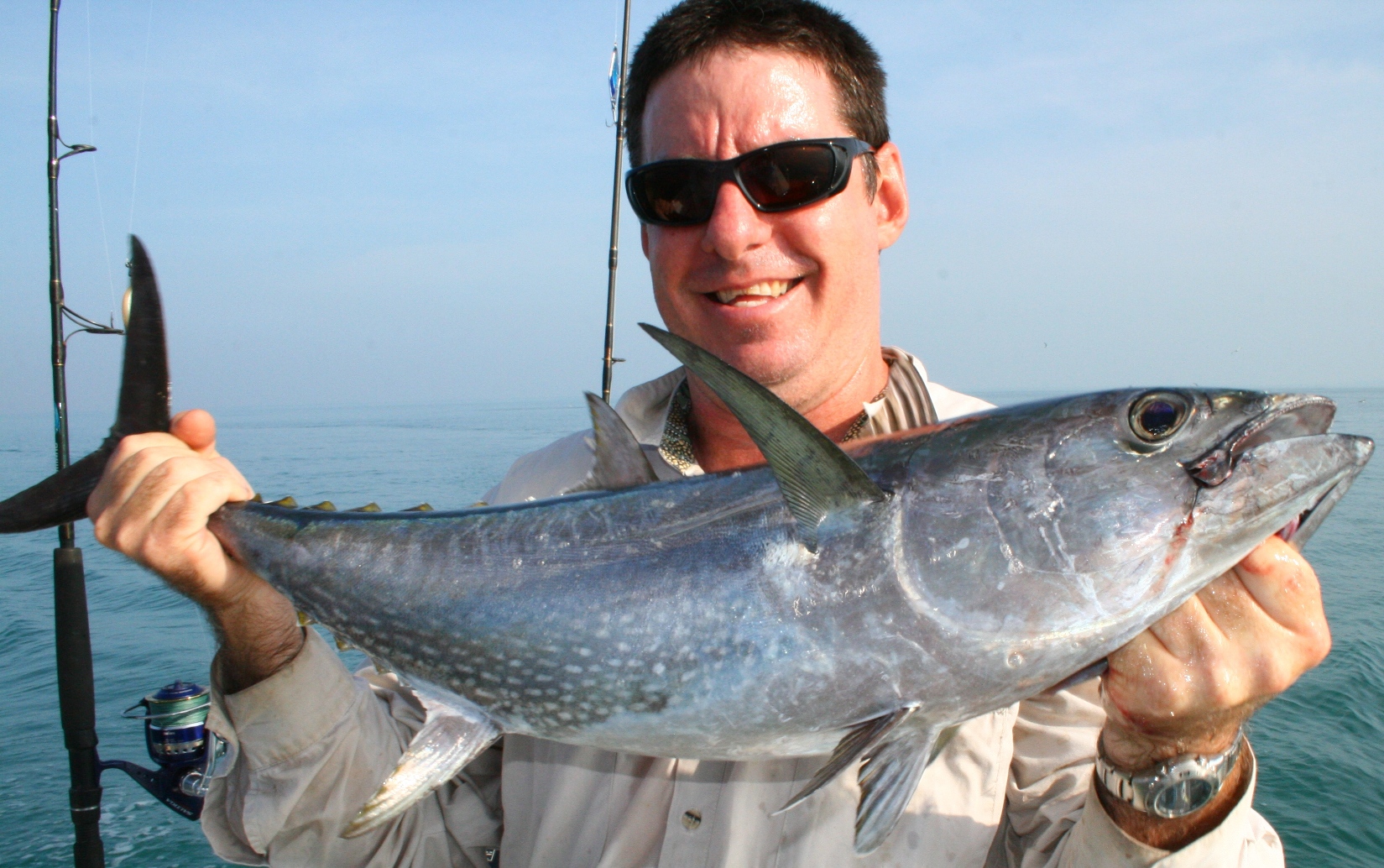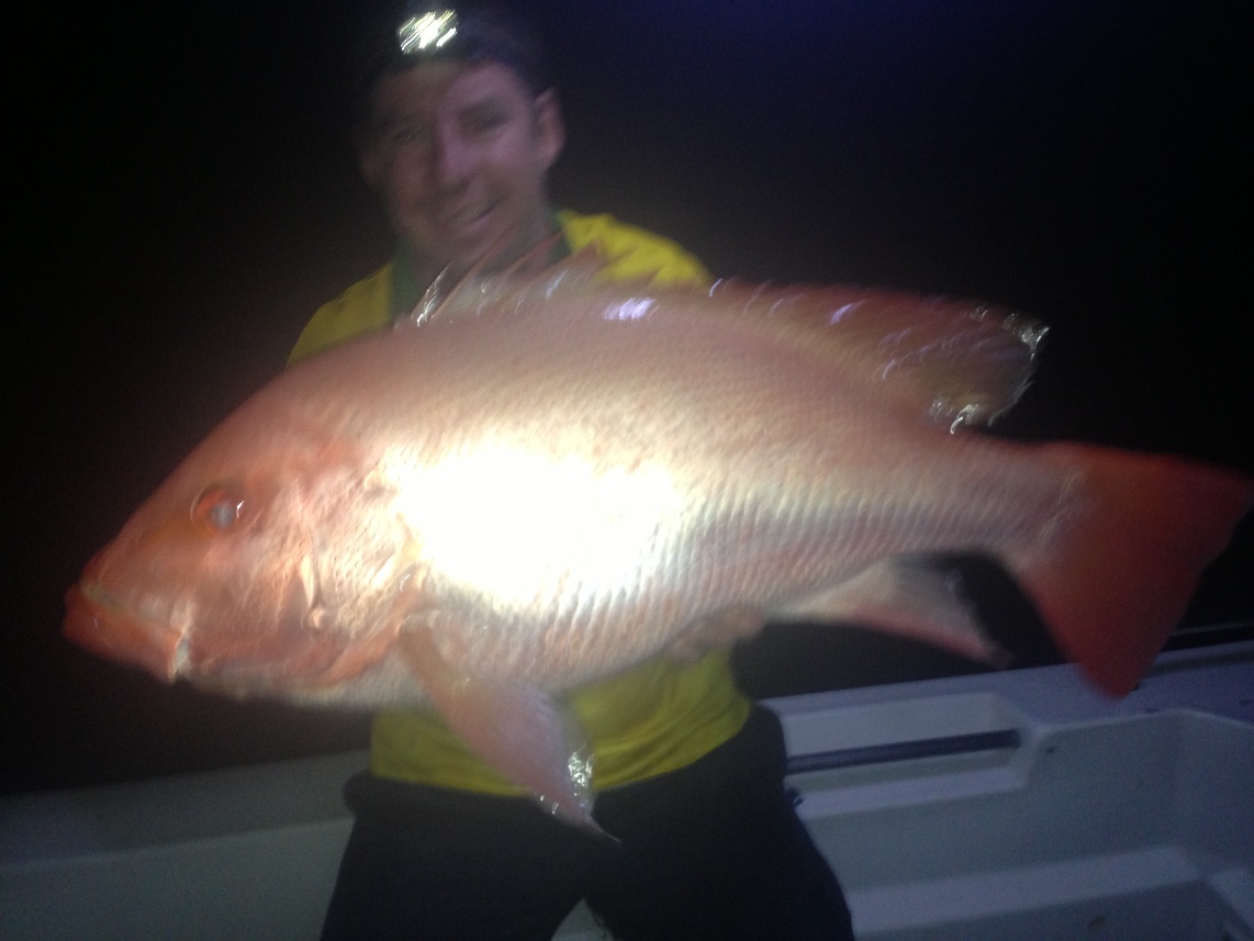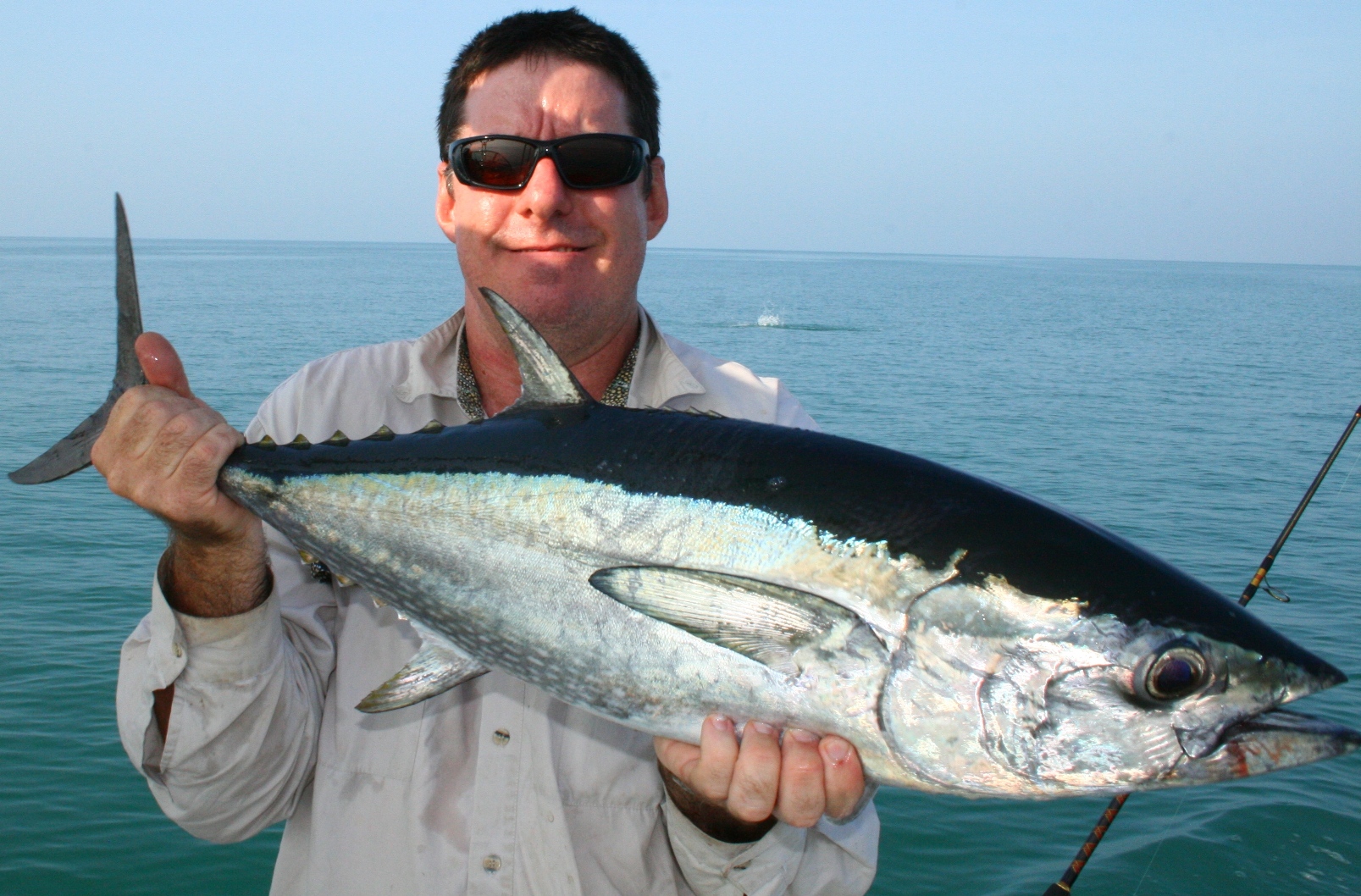 The best day was when three of us bagged out on Fingermark (Golden Snapper) in about 40 minutes. Nothing huge with the biggest going 62 cm. Most fish were in the high 40s and 50s. We probably caught around 50 Fingermark for the day. The same day we hit a school of Bluefin Tuna and managed a few nice fish plus some cool bycatch like a 90 cm plus Grey Mackerel which I forgot to measure and a GT. We also got some nice Grass Sweetlip but the catch of the day for me was a 62 cm Black Spot Tusk Fish. I got him in 10 feet of water and was pretty lucky even with 50lb braid. Another trip involved more Fingermark but not as many. Biggest was 65cm. I managed a solid Spanish Mackerel on a popper which was cool and the boys nailed some Bluefin and Stickbaits and Poppers. Craig got a solid Bluefin probably over 9 kilos on a stickbait. All Tuna were released this day. I also managed a half a metre long Grass Sweetlip.