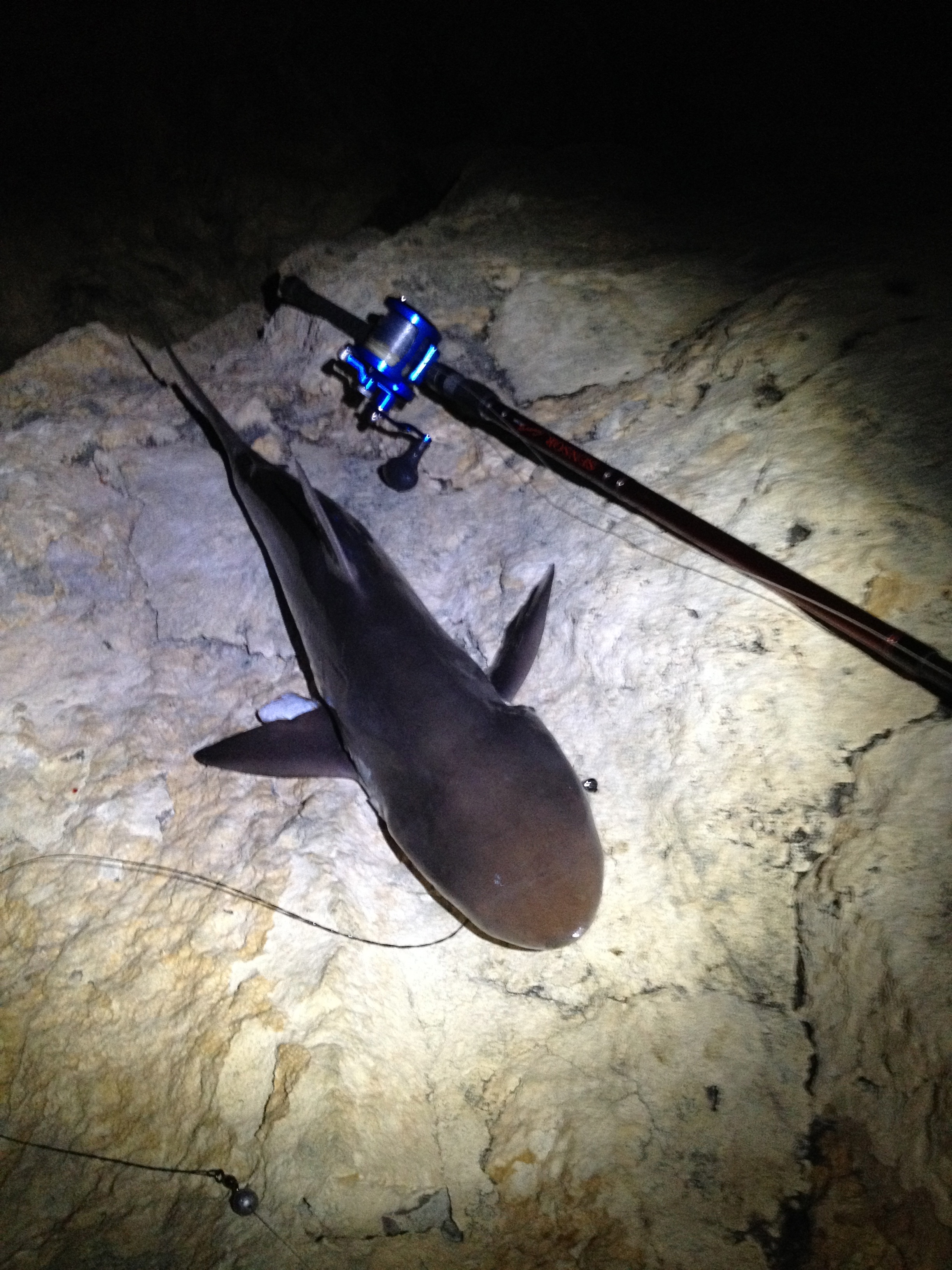 hit up one of my spots NOR for some sharks last night and managed to get 2 in 3 hours. first little dusky was about 1m then the next i hooked was much much bigger and took an hour to get to the rocks and land it solo. 2.3m female dusky shark caught on 40lb wire twisted and doubled with a whole pike under a balloon on a sensor surf rod and an avet mxj5.8mc spooled with 20lb braid backing and 20lb mono to a 100lb wind on leader. pretty dam stoked to land a shark over 80kg on less than 10kg gear on my own off the rocks!! both sharks where caught and released.