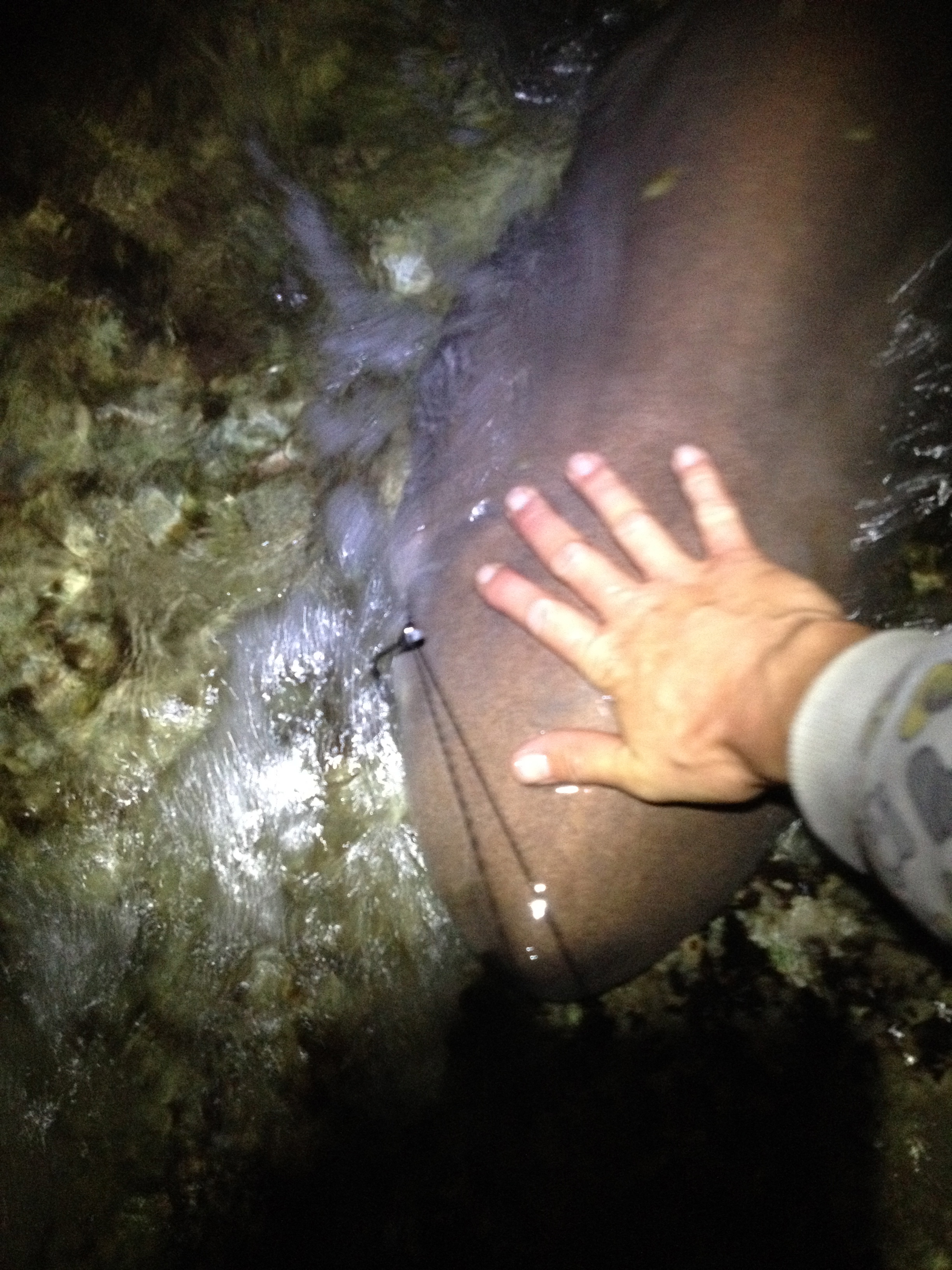 Yeah it wasn't easy to hold the shark and try get some photos as I couldn't get it out of the water haha. The photo of my hand compared to its head give you a good idea that it's a big shark.