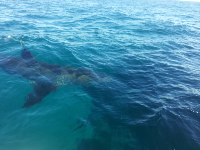 Saturday last week we were fishing our usual spot near Dyers Island burleying up and hoping for a decent fish to turn up . Well to my shock and amazment this 5 Metre white pointer turned up and hung arround for more than half an hour. We were only in about 30 foot of water and you could easily see how big it was . Have done a bit of diving arround the area in my younger days glad i wasnt in the water.