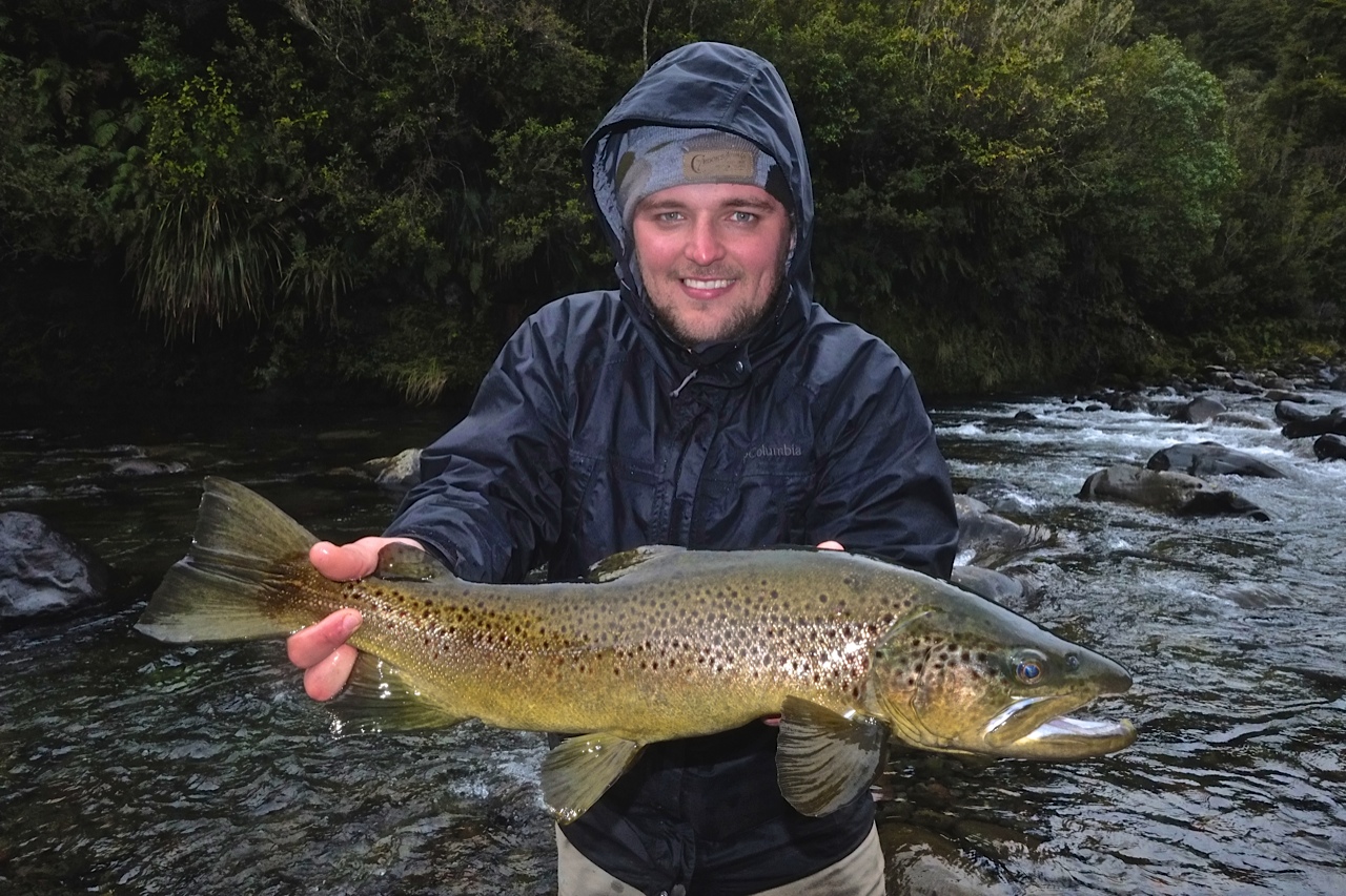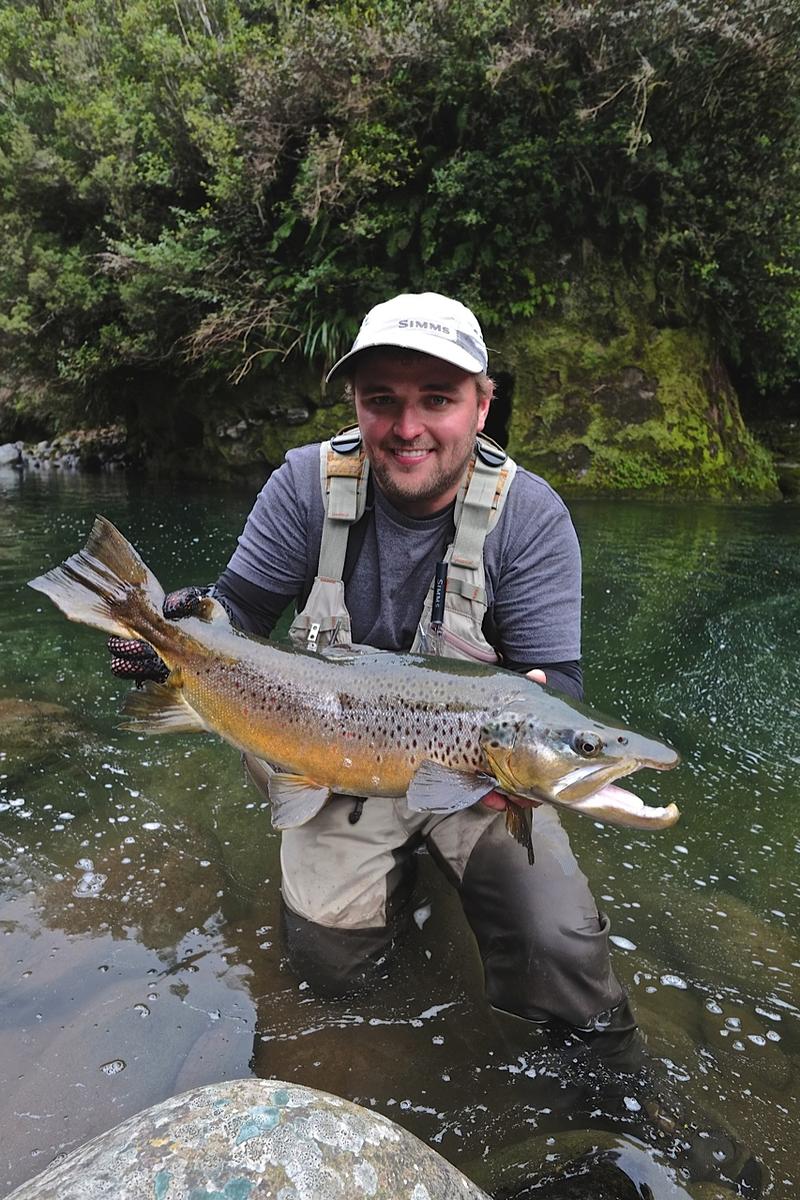 The fishing here is really really difficult with multiple currents comming into the one pool making line management very teadiuos and i was how do you say a tad rusty. We came across some 'pocket water" that was holding a brown roughly in the 7-8 pound mark and i launched a cast and completely missed the pocket hitting another pocked, and with frustration i yelled out that F*** , only for the indicator to go down and a hook up to a different brown! we hooked three fish from there and missed a few more!