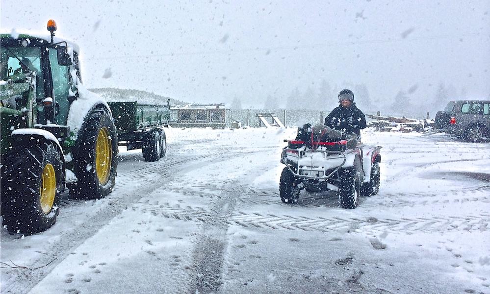 Arrvied at an area which i cant name and treeted to heavy heavy snow. it wasnt snow on the ground, it was basically down pouring. We assesed the conditions and though we would at least give it a shot. So we got on the quad and started heading down into the wilderness in a WARM 0 degree tempreture. The battle of constant constant heavy snow falls while fishing was challenging as well as the fingers getting to freezing point. Fishing was hard, with limited fish seen in the monring and accounting for 1 measly 5 pound rainbow.