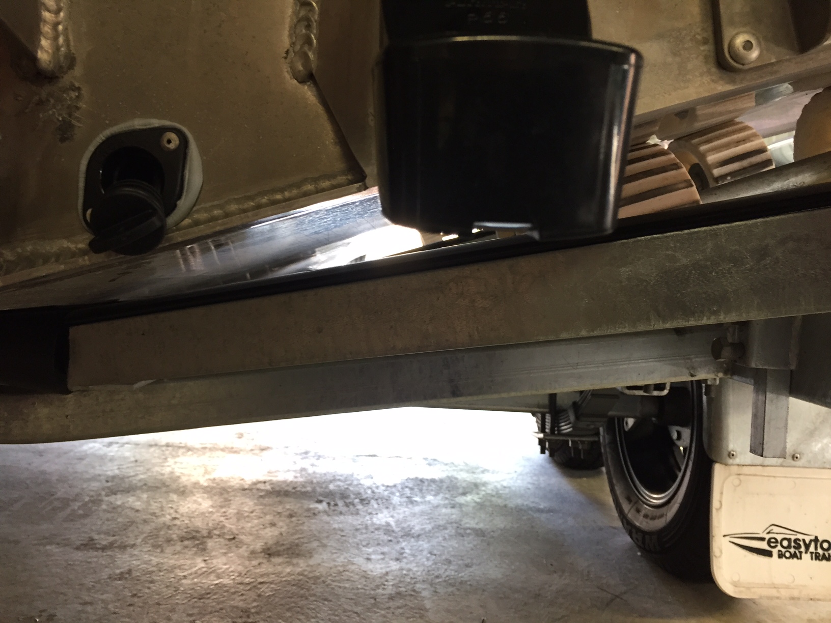 Starbug, thats not a hull protrusion, its the spare wheel sitting on the draw bar, water coming from under the hull is clean, roger the orientation of the tranny, thats where I'm going to make the next adjustments, cheers for the input fella's.