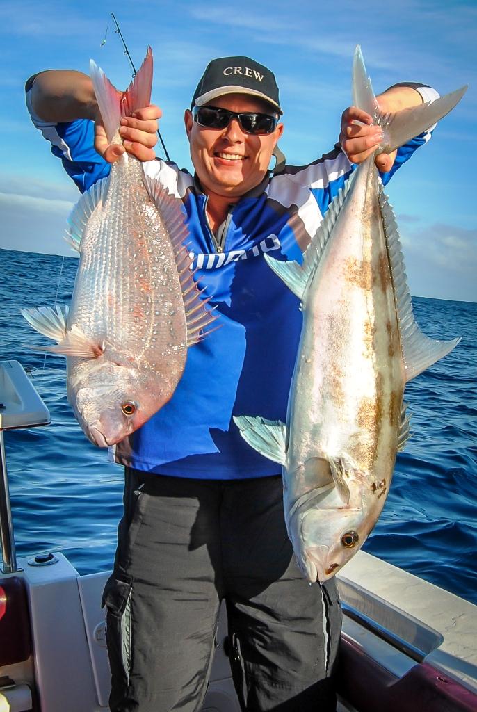 Not long after dropping anchor and setting up a burley trail we started catching Pinkies one-after-another and at times with double hook-ups. We managed a couple of smallish Sambos and both got smashed a couple of times on light gear. When the bites eventually slowed down we decided to do a drift with the sea anchor deployed and I managed to catch my largest Dhufish to date - a specimen of 79cm. Still a long way to go to the magical 100cm, but this goal is in my sights now that we are gaining a better understanding of these magnificent waters.