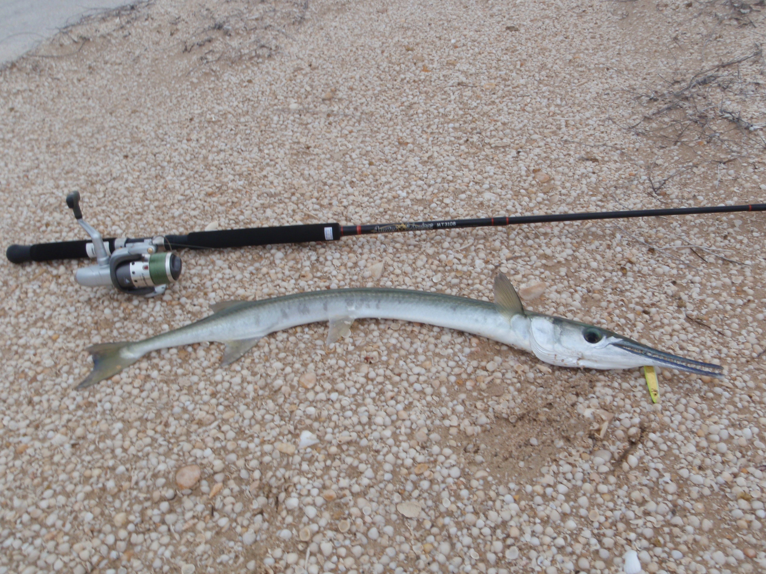 I waded out to a series of small sandbars and continued changing lures and getting the same result, until finally i managed to set the hooks and pulled in my first ever long tom, he must've been about a metre long, i was pretty stoked!