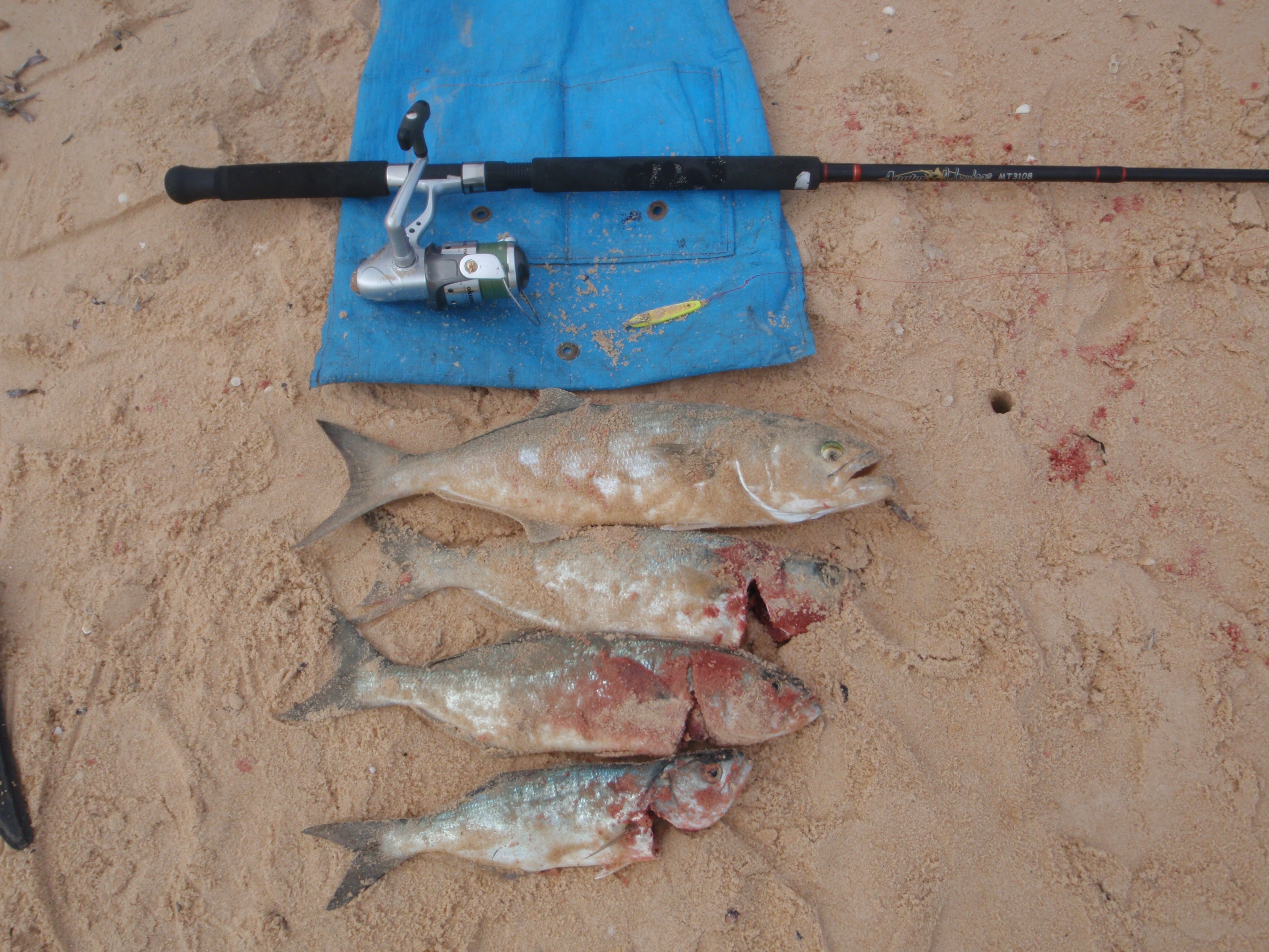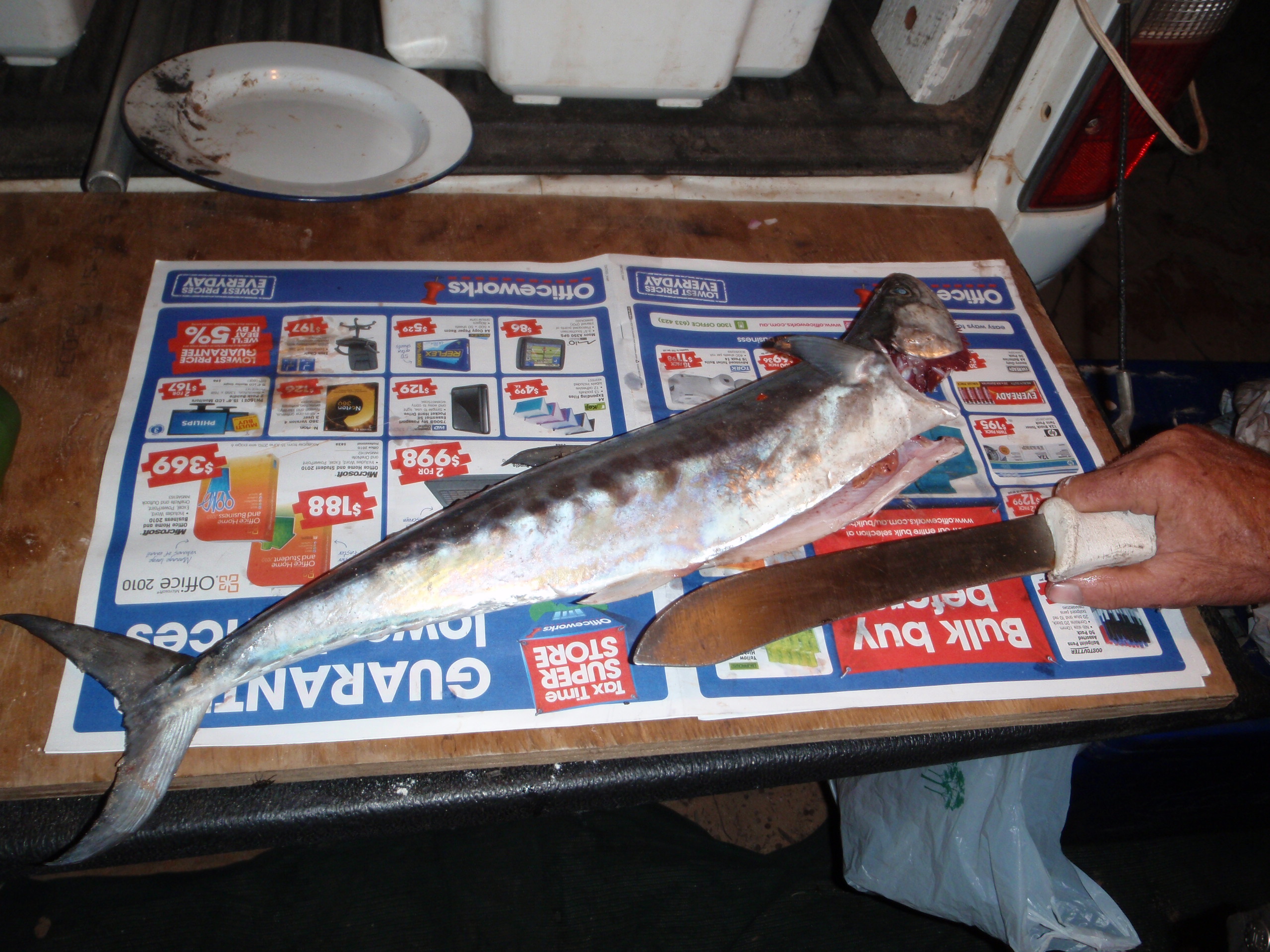 My old man followed suit but got busted off twice in a row, blaming the line on his rod and saying it had been sitting in the shed for eons. Being the top bloke that I am I let him have a go on my rod, and we each caught and lost a few tailor. I didnt get a picture but they were all similar size to the medium ones from earlier. The old boy had a go at hot-smoking them that night, and they turned out pretty good.