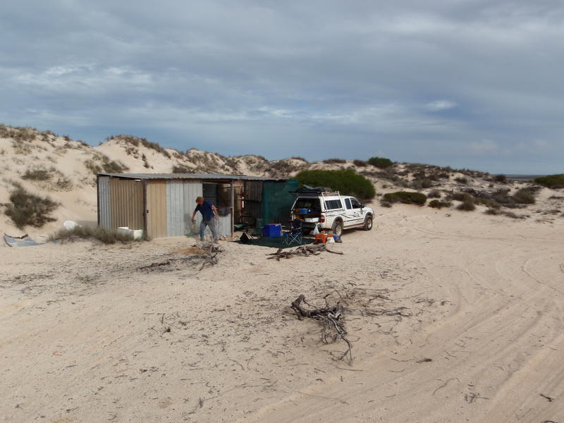 We tried wading around casting in the hope of a flathead, but the tide was out and nothing was happening. further up the beach we came across this shack behind the dunes, where we stopped to make bacon sandwiches before venturing on.