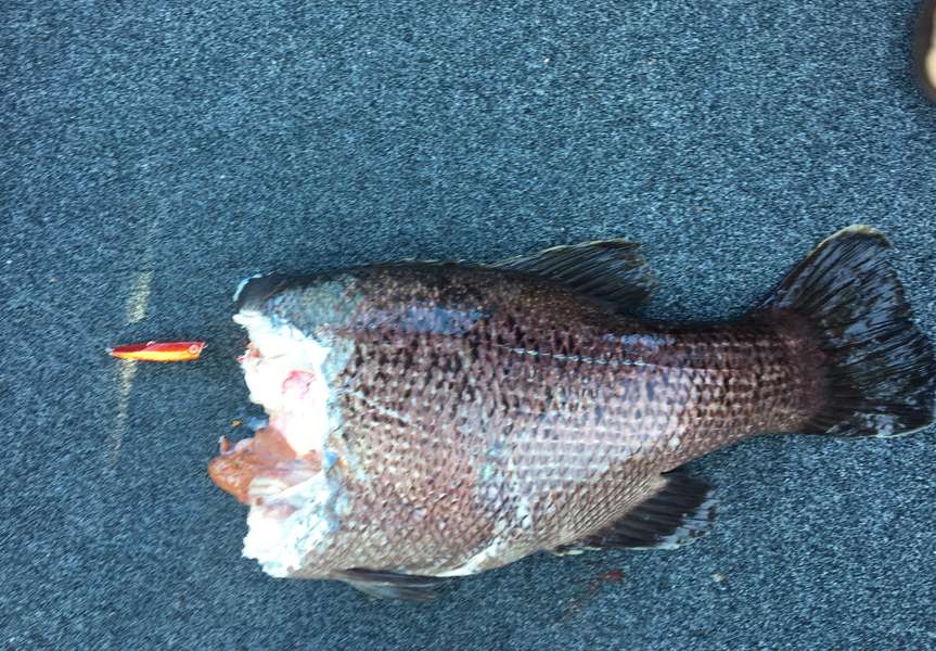 Thought this was worthy of a mention. First sharked dhu for me. North of Two Rocks inside the bank. Managed to get the jig back...minus the hooks. Just though the assist hook line had worn through until we saw something floating 50m away. Lucky for swim bladders. Can't quite envisage how it happened. Decent size shark I imagine.