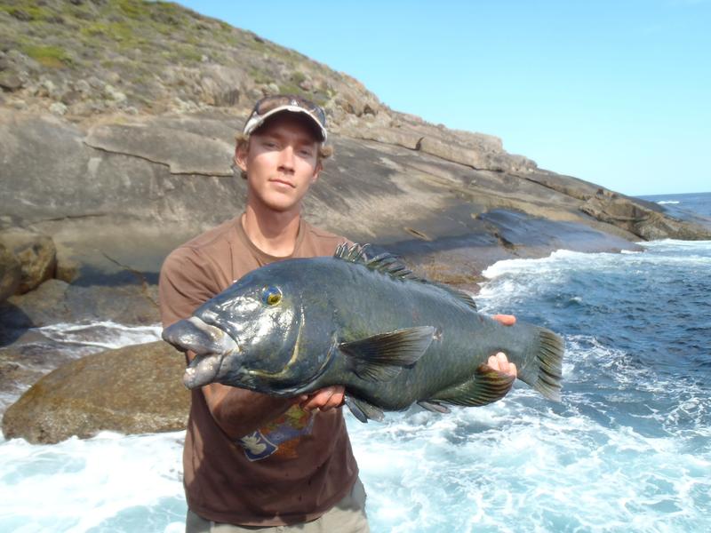G'day all. I headed down south over the Anzac Day long weekend. Embarked on a huge trek to find some lightly fished ledges. Didn't really find the deep water I was looking for but made it to a likely looking ledge. A school of big, fat salmon were there all day, and all too willing to fight over surface offerings. This kept me very amused inbetween chasing blues. After chumming up with some salmon, what I initially thought was a small bronzy chasing my salmon, turned out to be a big Samson, who had some smaller mates. I picked one up on a stickbait and another larger model on a plastic, but the latter straightened the hook as I was trying to drag him up the rocks. Was one hell of a fight though. Also managed a little bluey for my troubles