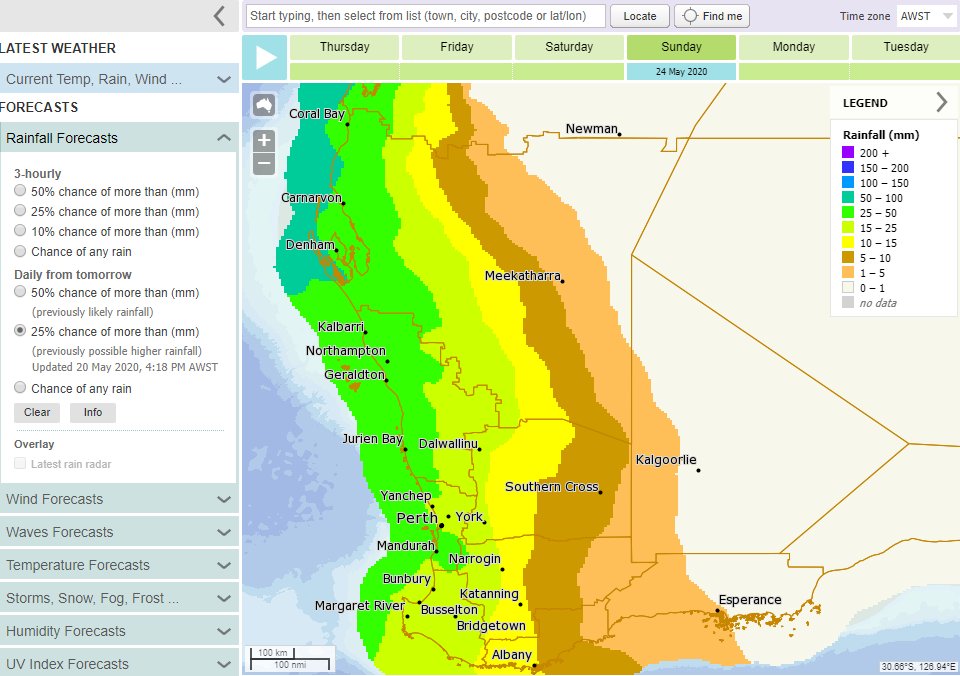 Excellent stuff, had a look at the Wooramel forecast and we are looking at a 95% chance of rain on Sunday. Will be very welcome, we had 1.4ml about 2 weeks back and a light shower while we were standing out at the roadside on Anzac Day morning that didn't register in the gauge. Considering over the last 4-5 years the average has dropped from 200mm annually to around 70mm