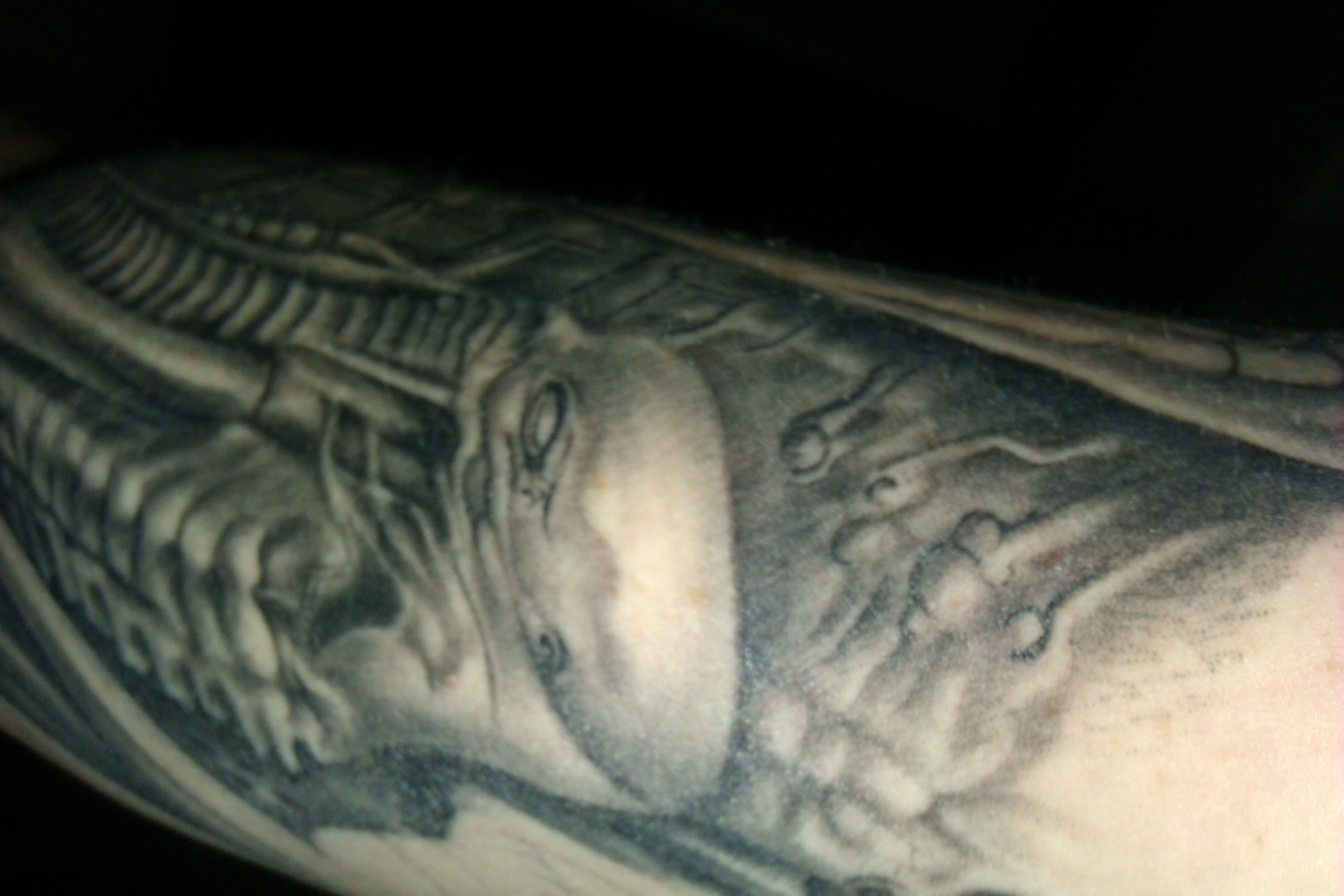 Do like the Giger tats, always been a fan of his art work, wife says no though, reckons it will scare the children!