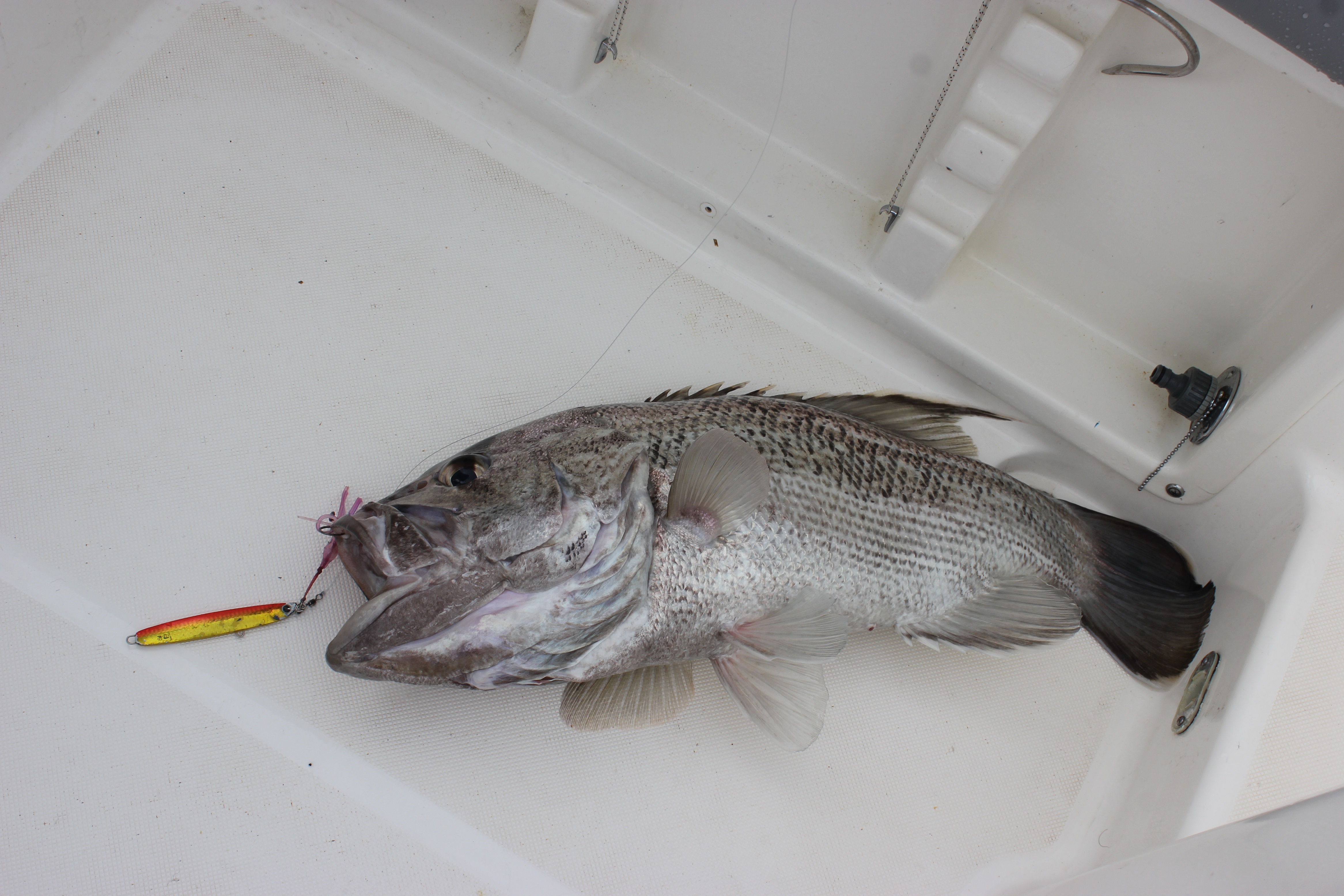 after finding a new spot in the 40's I picked up a nice dhuie on an ima ro jig probly around the 6kg mark. Followed by an agressive little dhuie just under that hit my jig 6 times before I hooked it. soon after dave pulled up a nice dhu around similar size.