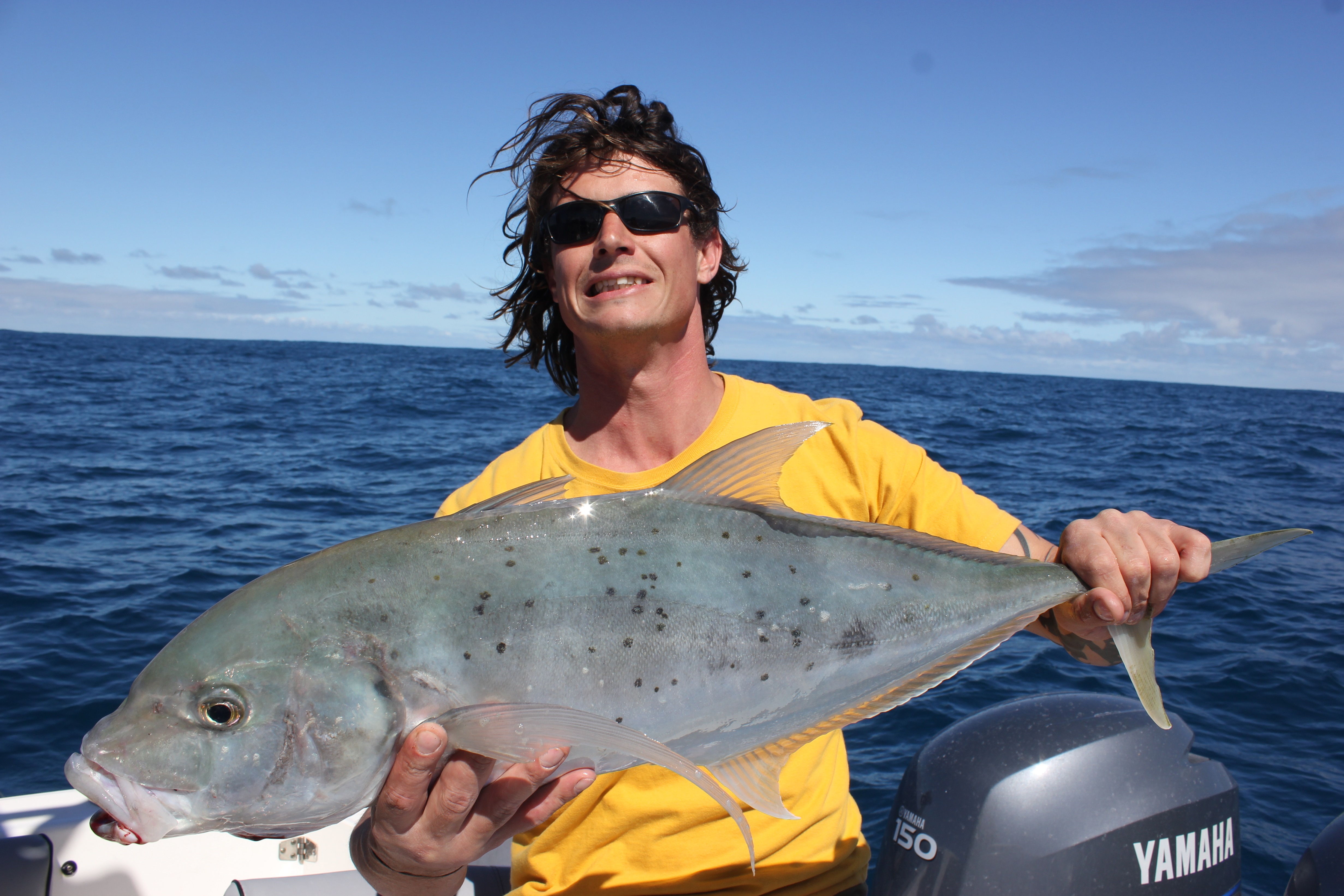 with the boss giving the go ahead for the day off me and two mates headed off two rocks in chase of dhuies and sambos while hoping to break my drought I have been going through lately. After taking off from the ramp and one of my deckies started peeeling a banana and eating it I wasnt feeling too confident. Since putting a new sounder in 2 months ago I thought it would be easier to catch fish but has been harder, today was a good way to break the bad luck.