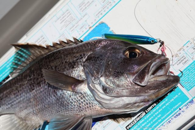 Well me and duffy decided to head out off two rocks today in search of some demersal fish that would be willing to eat our jigs. The weather was awesome today and we were able to sit on 30knts the whole way out to the spots. Although Fishing was quite first off in the morning Duffy managed to land a nice size baldy which put up a great fight on his new saltiga 4000. We pursisted throughout the morning picking the odd fish up here and there, I began to think we weren't going to have a very productive day. I decided to push north and hit a ledge up that I had had good success on early last year. It produced the goods with plenty of fish coming over the side, the ground was full of lumps and the fish were hanging on the edge's of the lumps.