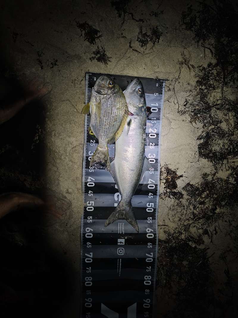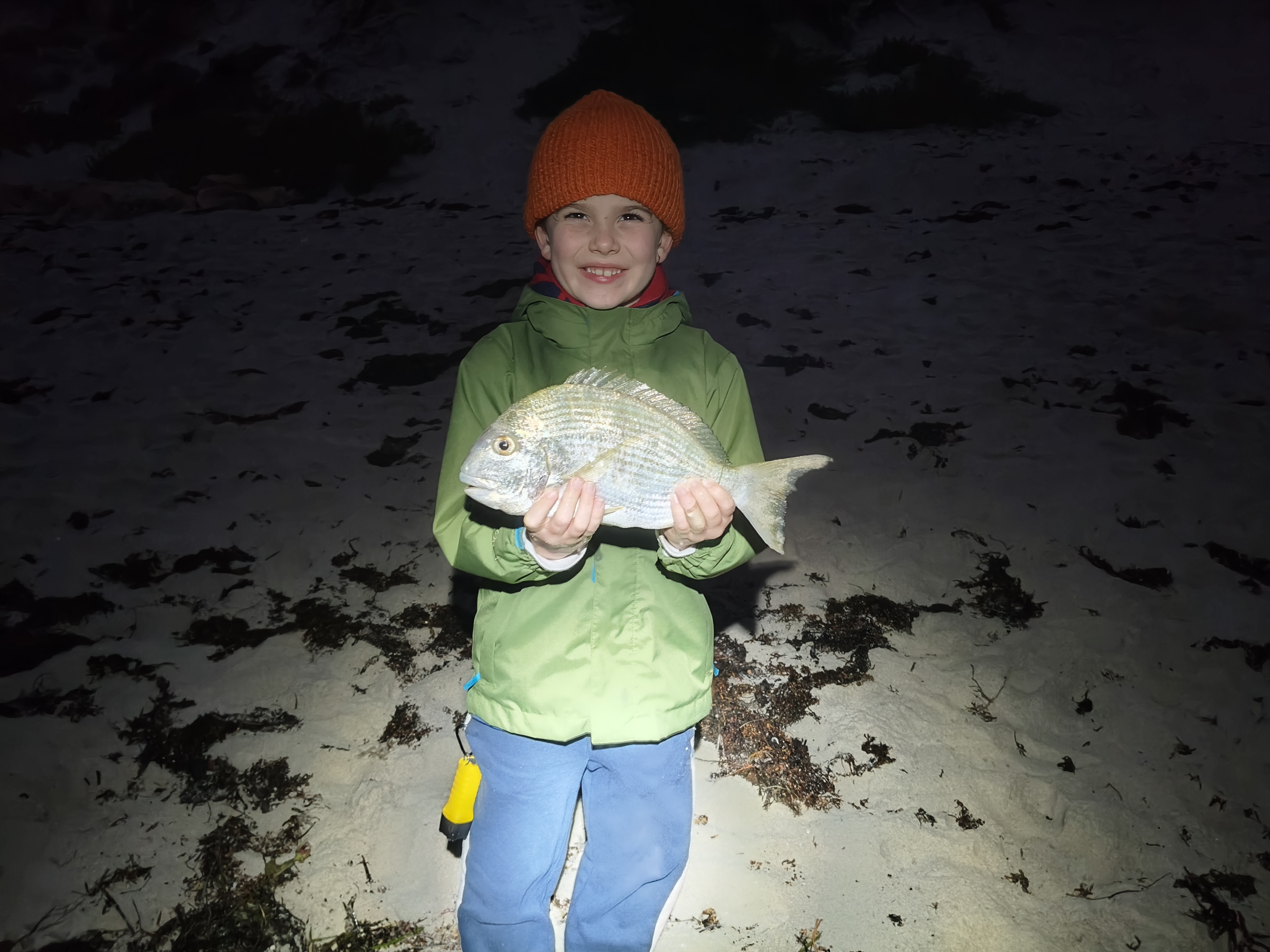 I've been looking for a spot to fish thats not to dangerous for the little one and might have finally found one, the young bloke got his first fish other than a blowie and was super stoked check out the grin, a few bust offs and a Tailor to end the night.
